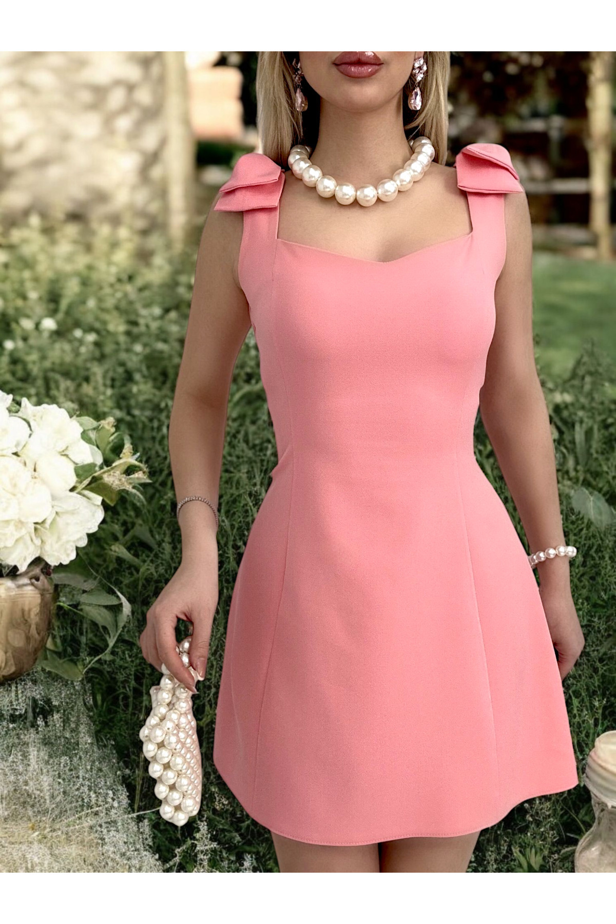 Şeker Pembe Fiyonklu Mini Abiye Elbise Şeker Pembe Fiyonklu Mini Abiye Elbise Elb045 XL