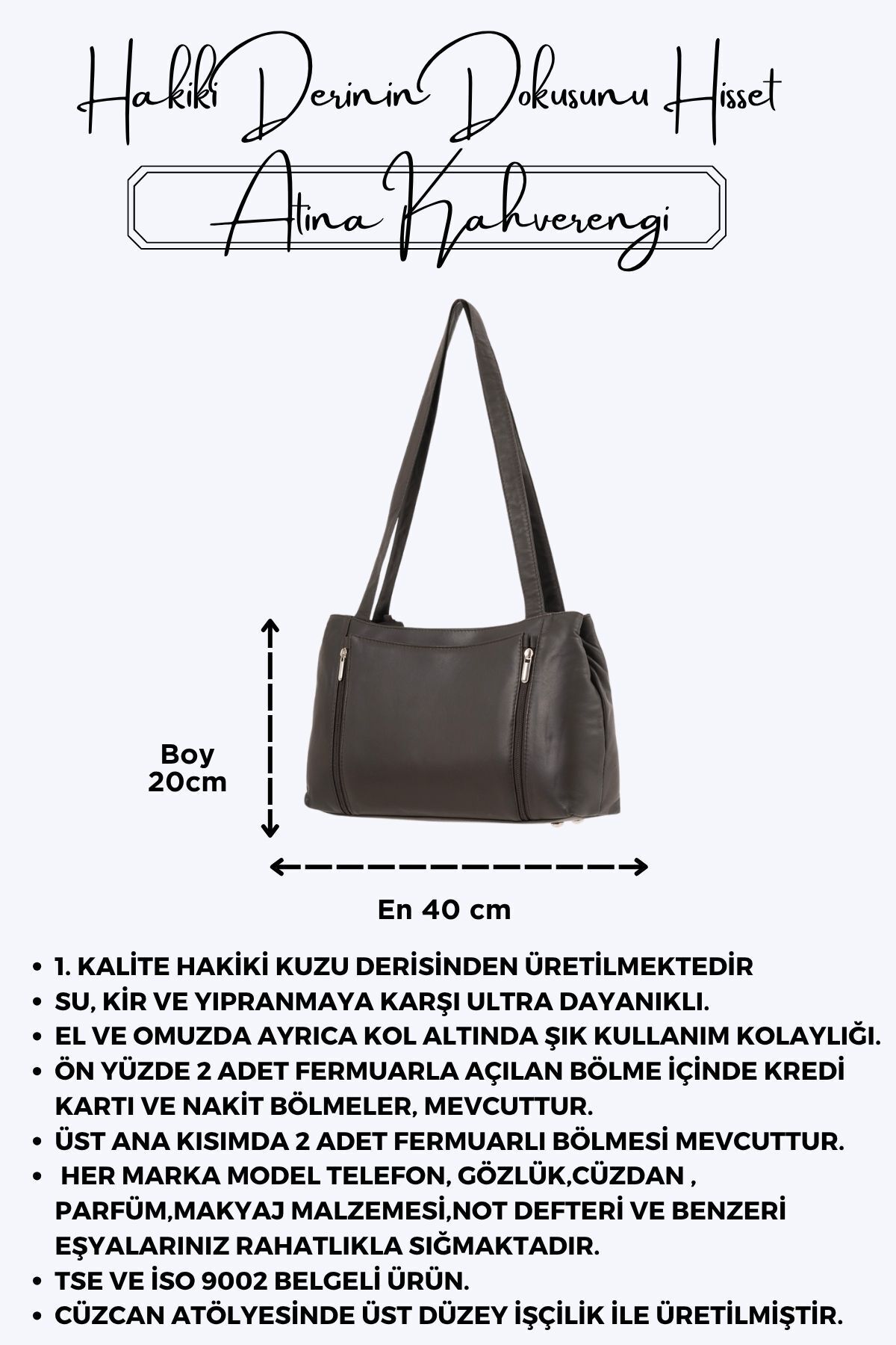 Atina Kahverengi Hakiki Deri Kadın El Omuz ve Kol Çantası Atina Kahverengi Hakiki Deri Kadın El Omuz ve Kol Çantası 0225 تک سایز