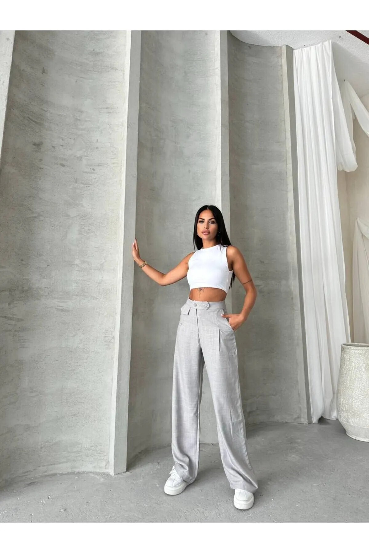 Yüksek Bel Keten Görünümlü Palazzo Pantolon Yüksek Bel Keten Görünümlü Palazzo Pantolon çiftdüğmelipallazzo XL