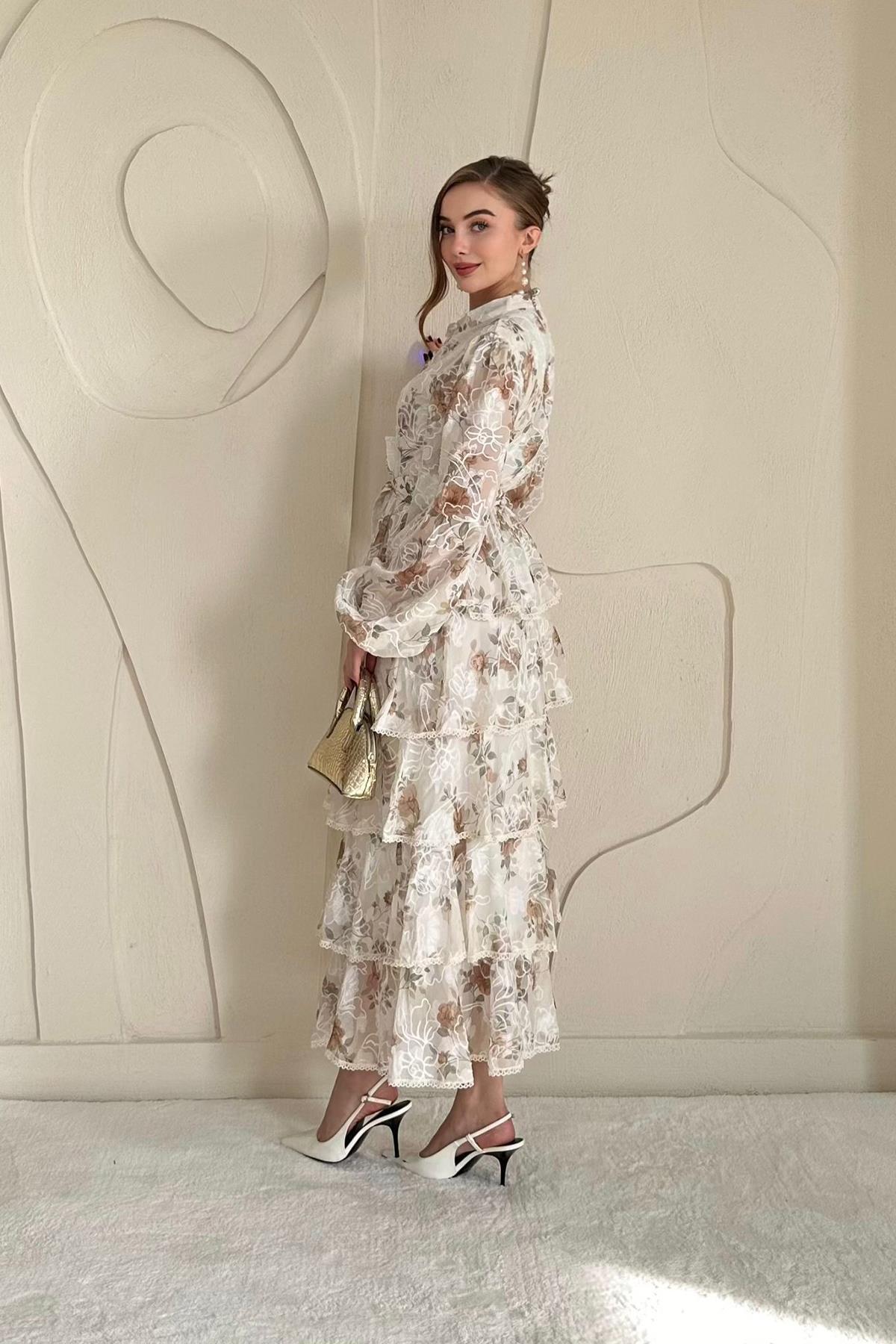 Volanlı Şeritli Kat Kat Elbise Volanlı Şeritli Kat Kat Elbise 8009 L