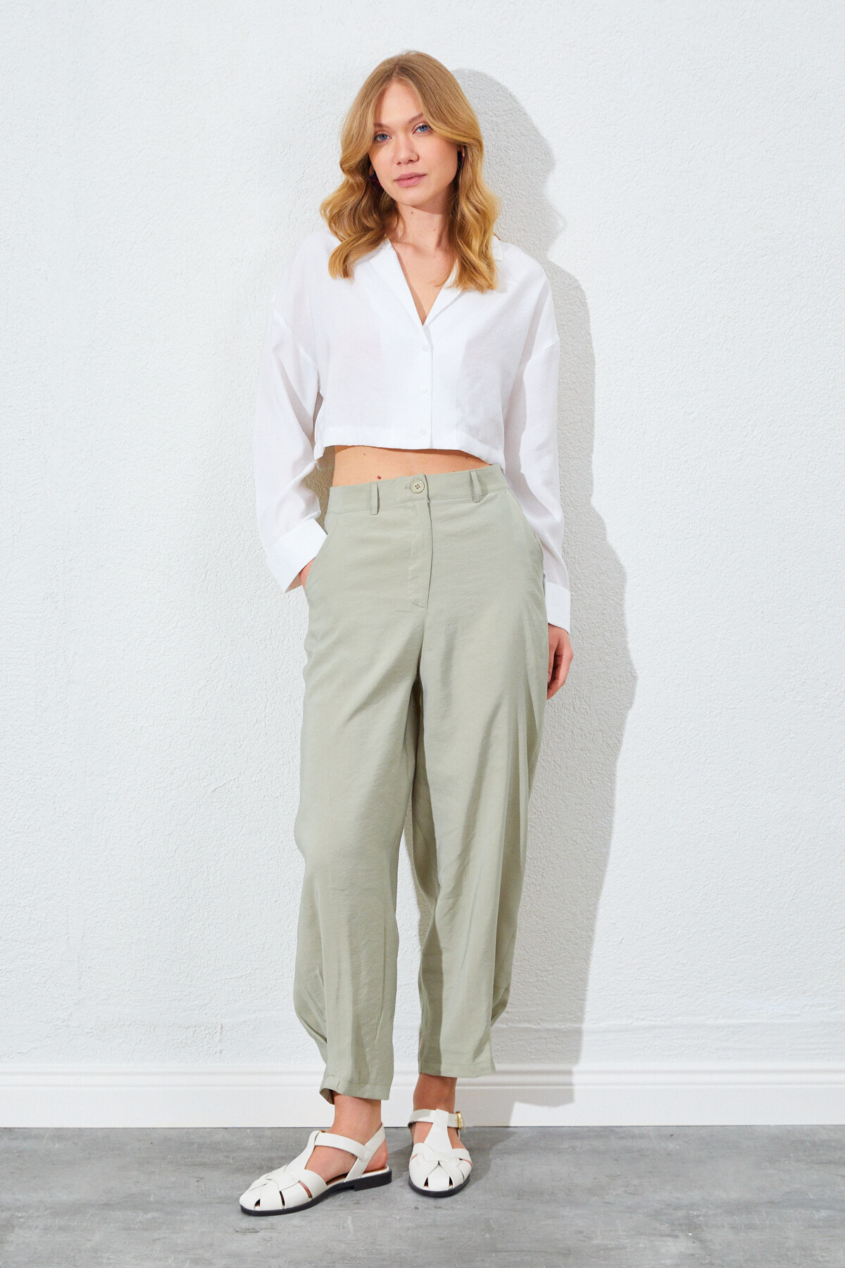 Paça Düğmeli Modal Kumaş Pantolon - Çağla | Mks661811-01 Paça Düğmeli Modal Kumaş Pantolon - Çağla | Mks661811-01 MKS661811-01 L