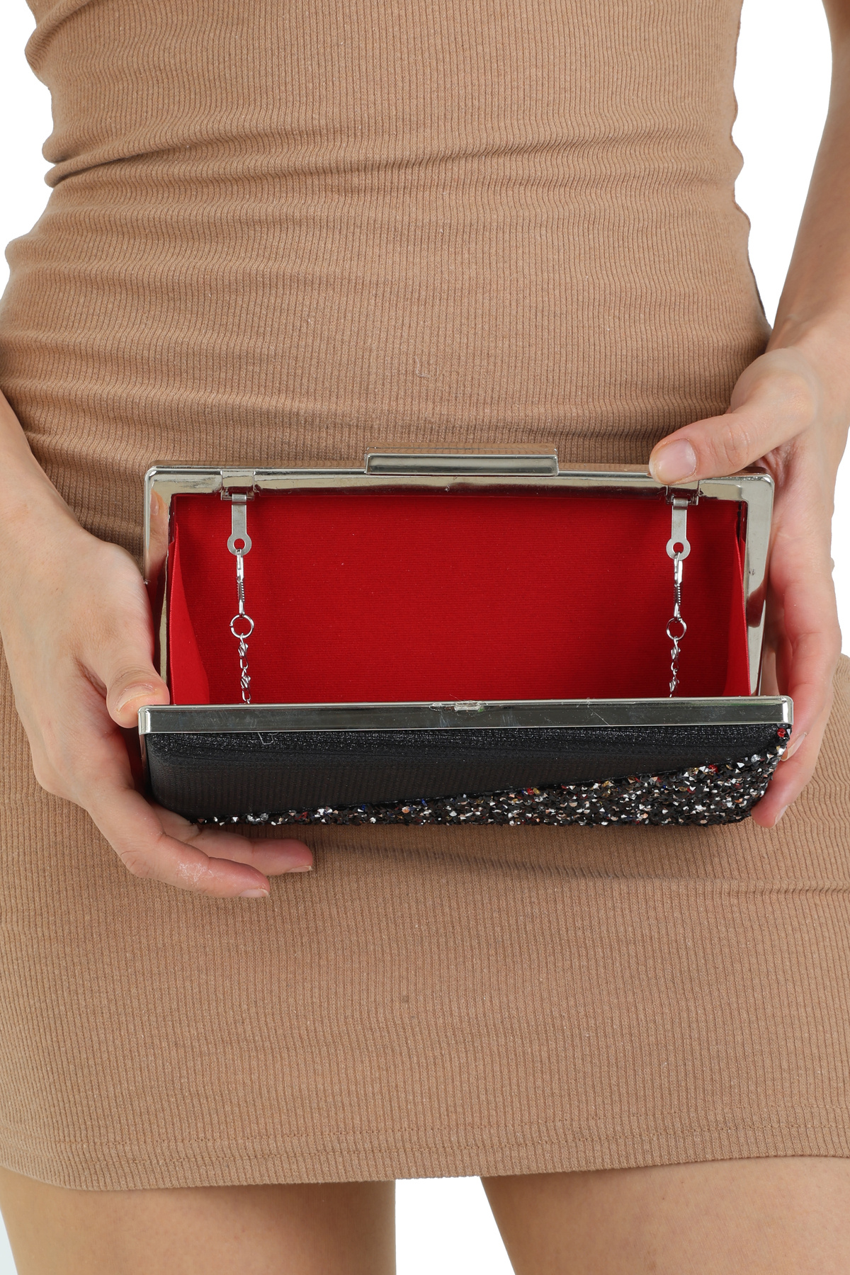 Siyah Taşlı Kadın Iri Taş Işlemeli Zincir Askılı Kol Ve Omuz Abiye Çanta Siyah Taşlı Kadın Iri Taş Işlemeli Zincir Askılı Kol Ve Omuz Abiye Çanta DDAC240 تک سایز