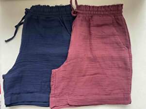 Kadın Beli Lastikli Müslin Basic Yazlık Laci Şort Kadın Beli Lastikli Müslin Basic Yazlık Laci Şort 175-5YB25548ŞRT XL
