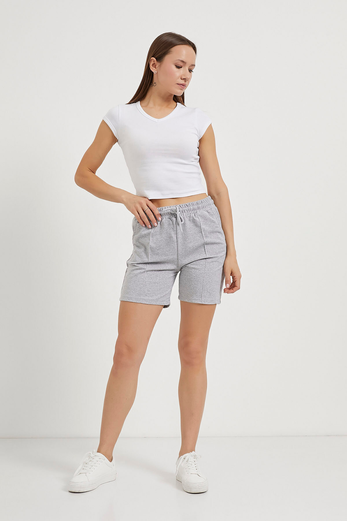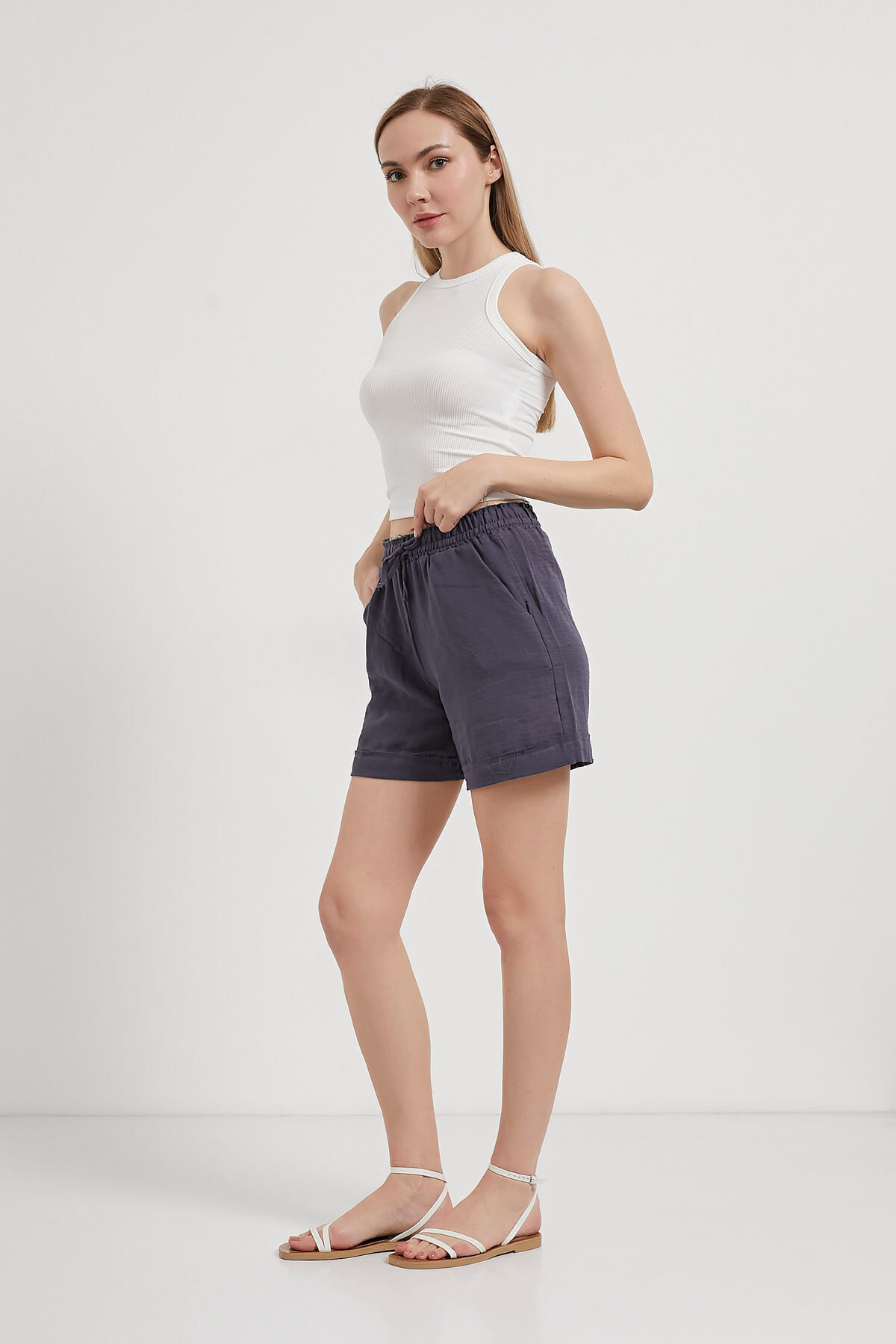 Kadın Beli Lastikli Müslin Basic Yazlık Füme Şort Kadın Beli Lastikli Müslin Basic Yazlık Füme Şort 175-5YB25548ŞRT XL