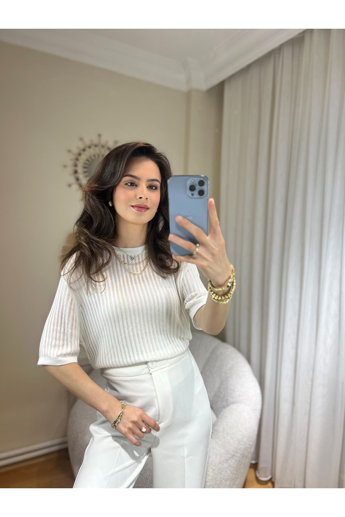 KADIN STANDART AJURLU TRİKO BLUZ KADIN STANDART AJURLU TRİKO BLUZ 5373839991 Standart