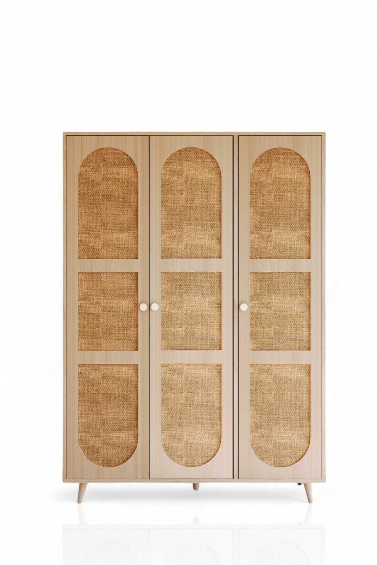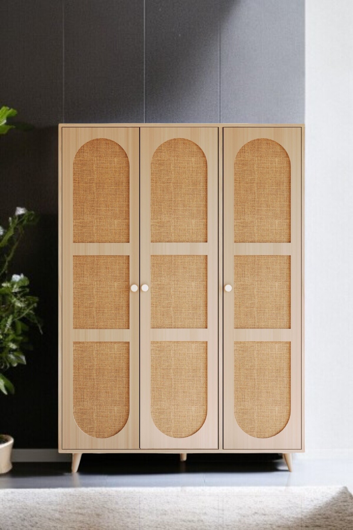 Bali Bohem 3 Kapaklı Gardırop – Jüt Kumaş MDF Kapaklı Elbise Dolabı | Meşe Renk – Bali Bohem 3 Kapaklı Gardırop – Jüt Kumaş MDF Kapaklı Elbise Dolabı | Meşe Renk – FLBLJ33 180 cm