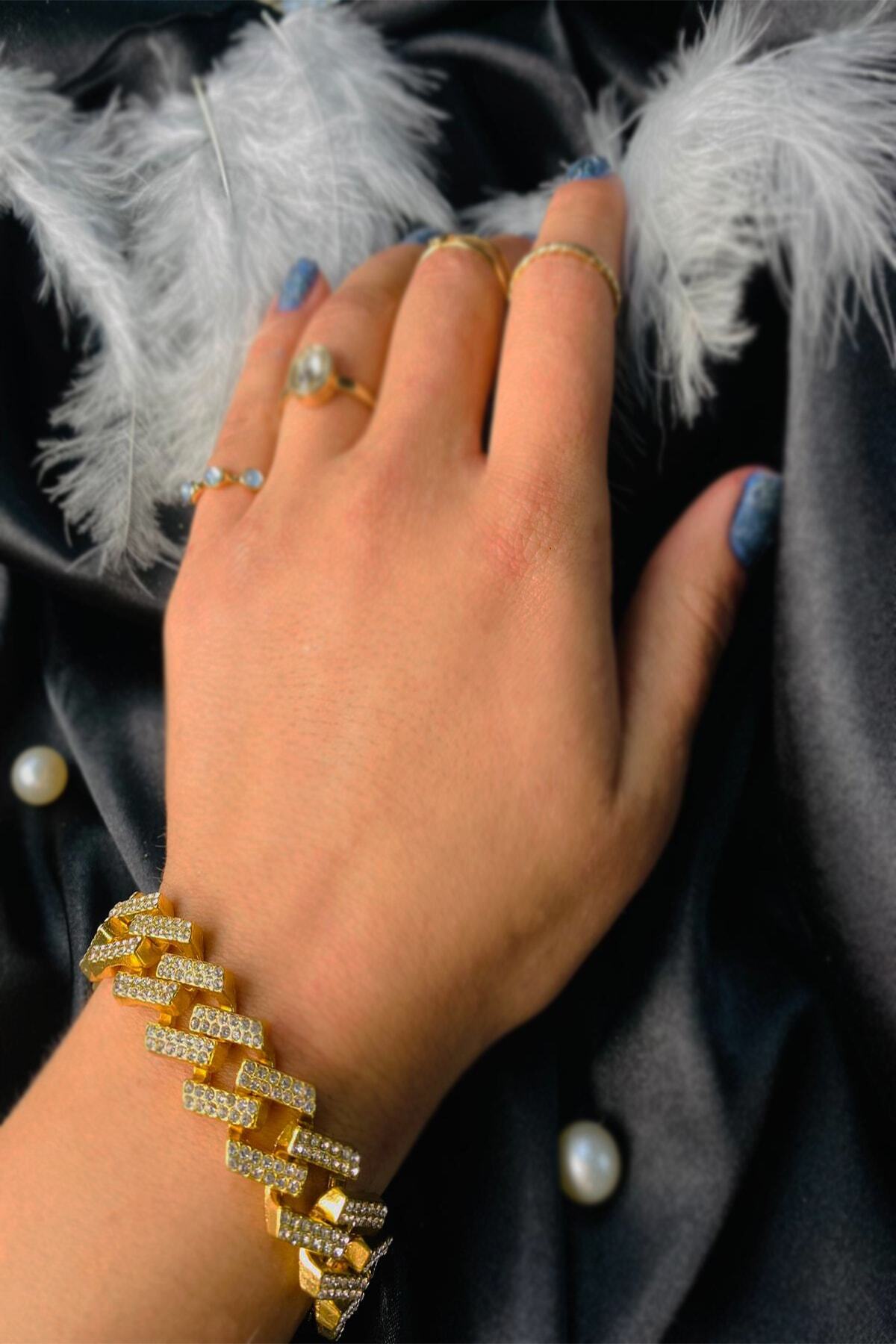 Taşlı Ince Çelik Bileklik Sims Chain Taşlı Ince Çelik Bileklik Sims Chain CN003 20 cm