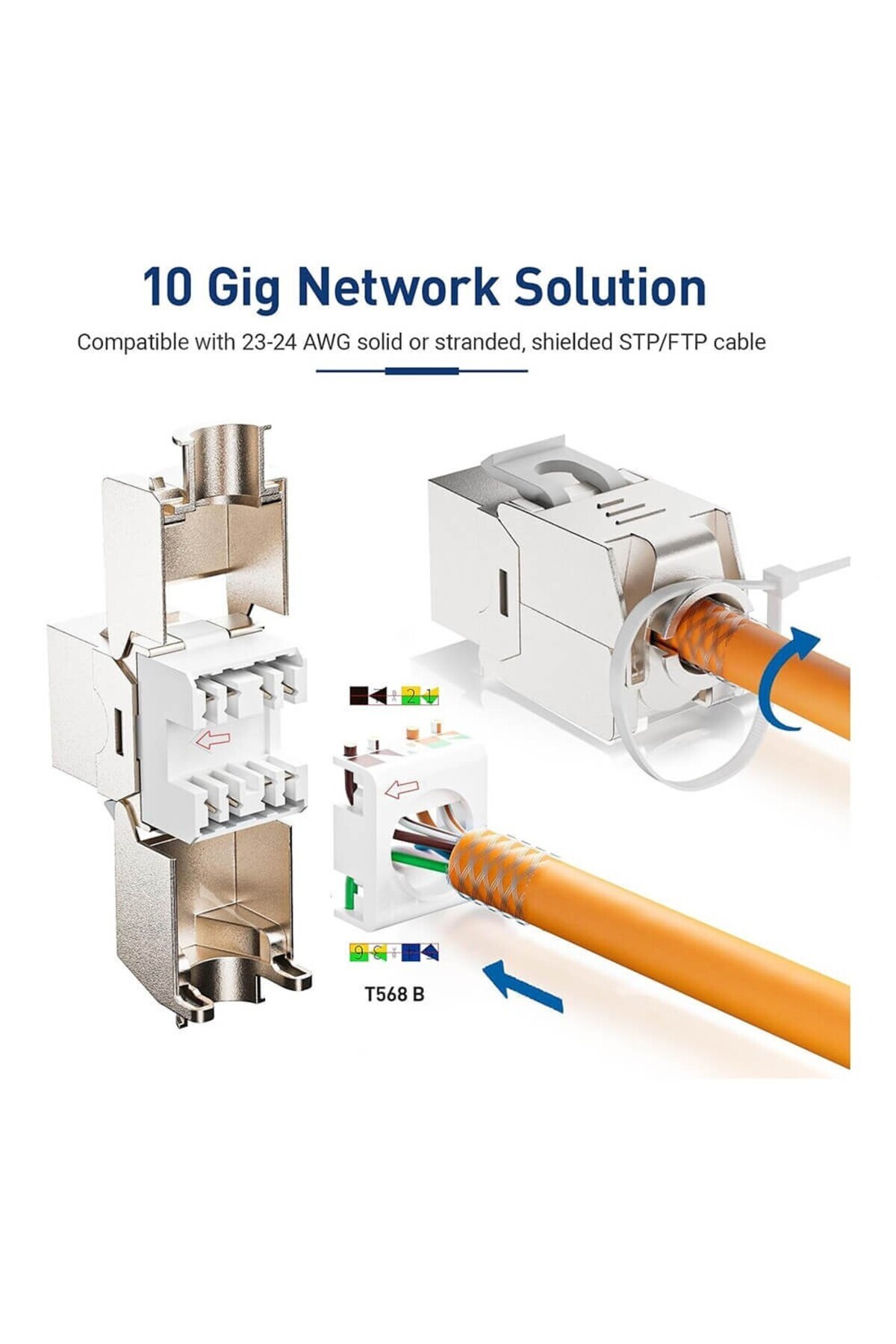 10 Adet - CAT6A Keystone Jack - Cat6A RJ45 Toolless Shielded STP Keystone Jack 180 Derece 10Gbps 10 Adet - CAT6A Keystone Jack - Cat6A RJ45 Toolless Shielded STP Keystone Jack 180 Derece 10Gbps w4818-T3-10adet تک سایز