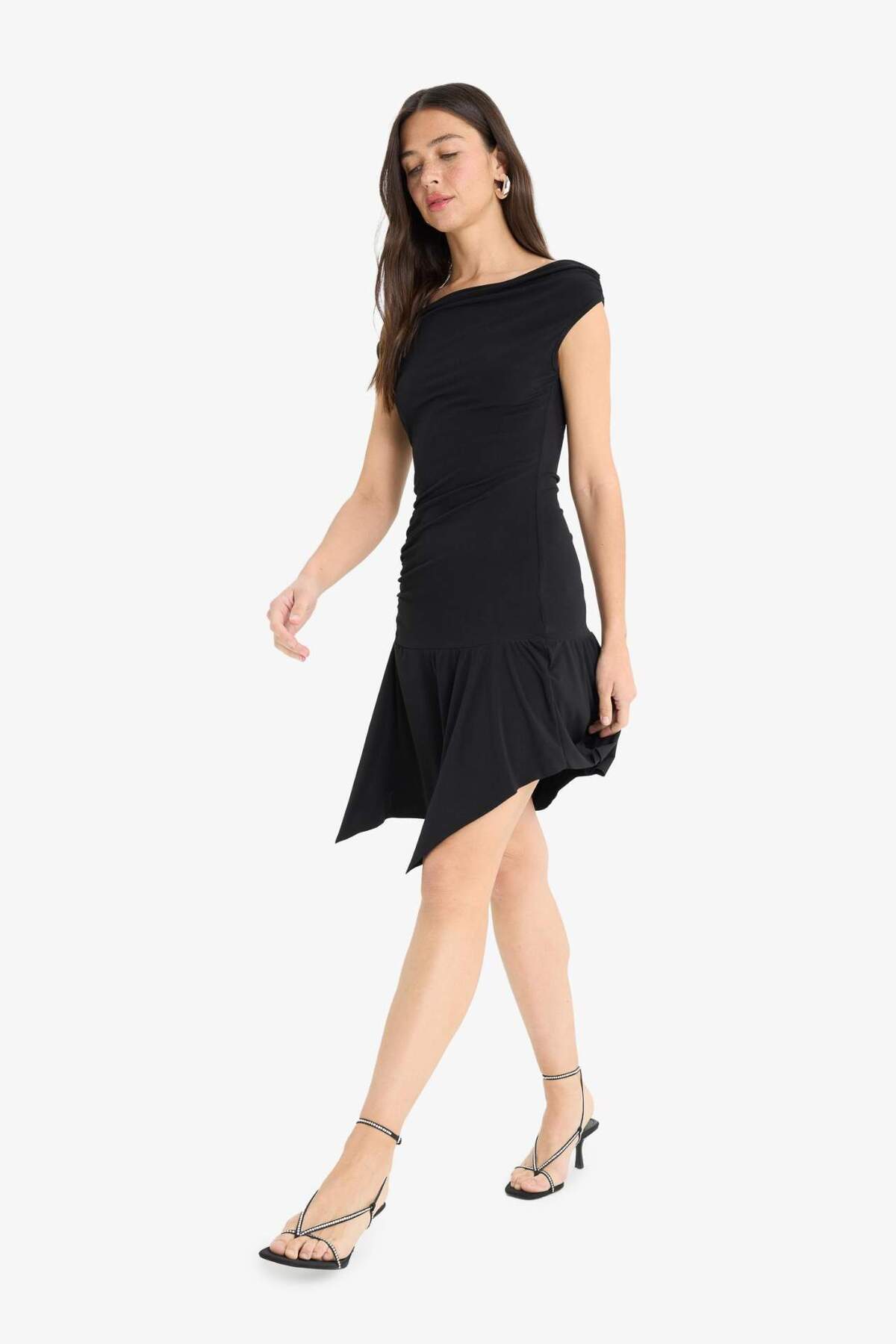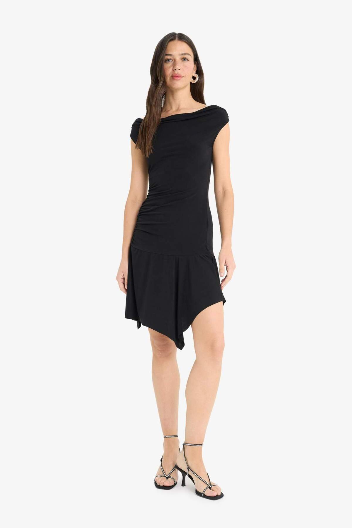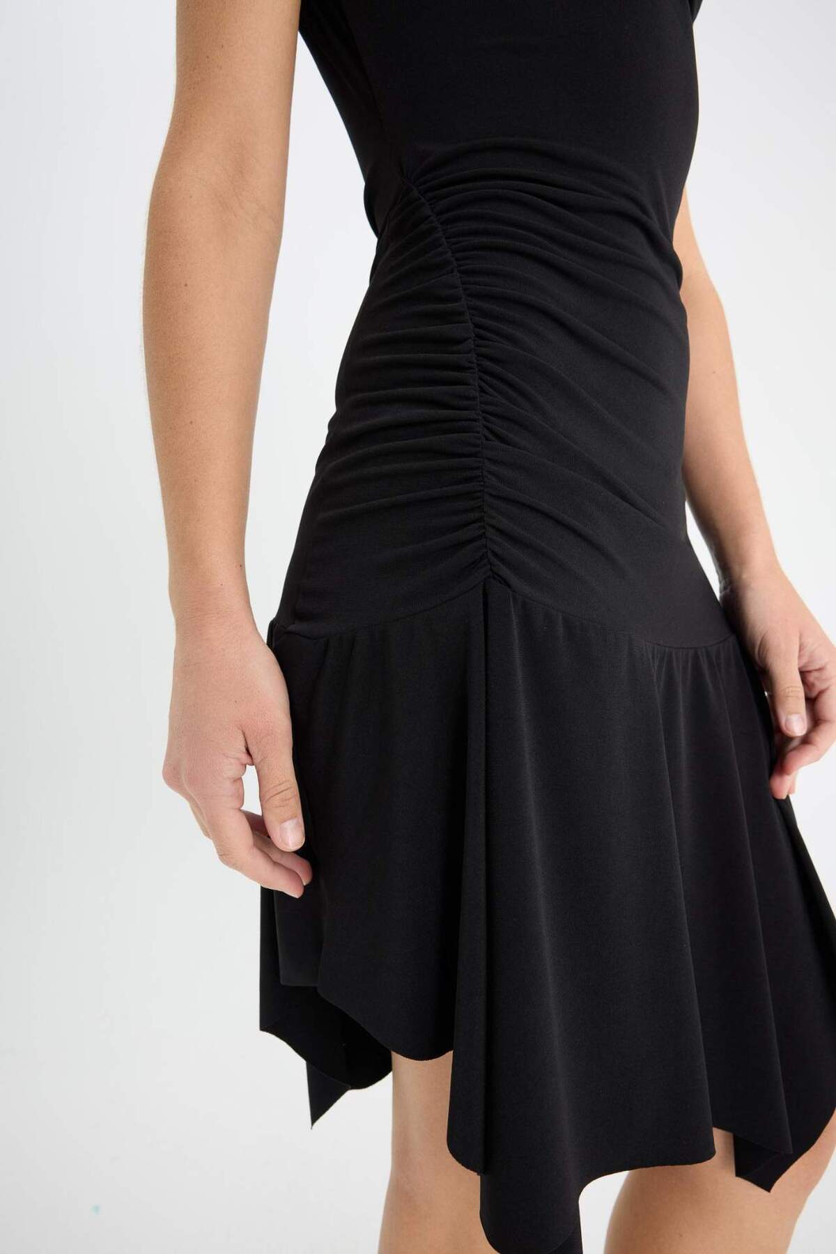 Coool Omuzu Açık Kısa Kollu Mini Siyah Elbise F5549AX25SM Coool Omuzu Açık Kısa Kollu Mini Siyah Elbise F5549AX25SM L