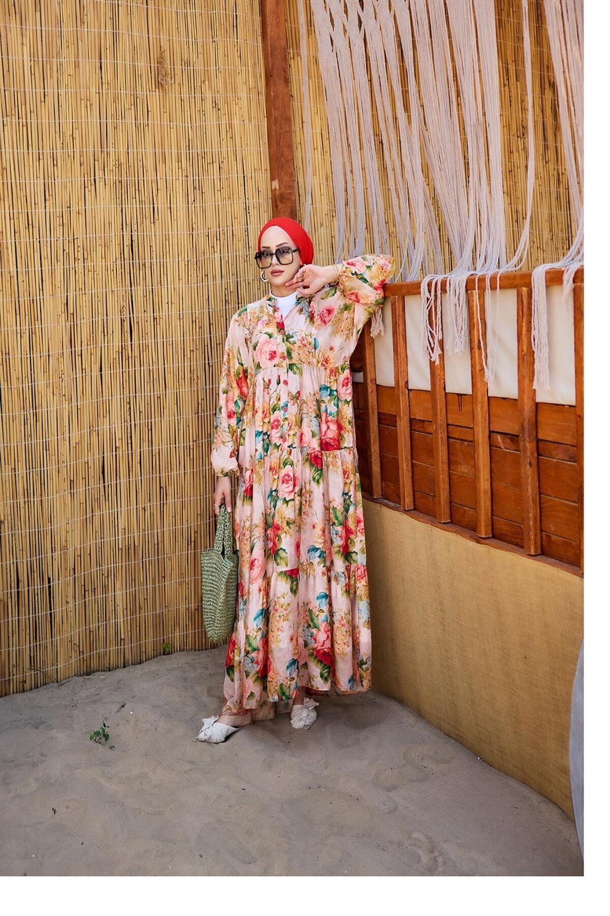 Kadın Gül Desenli Elbise Nar Çiçeği Kadın Gül Desenli Elbise Nar Çiçeği 183-1551.40 L/XL