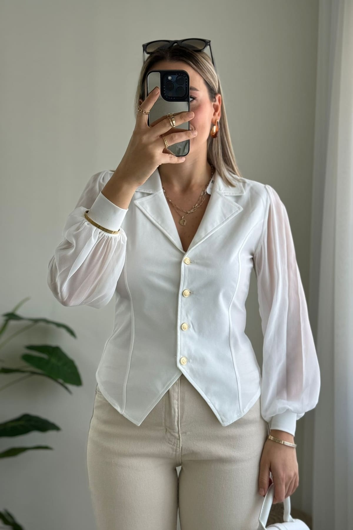 Beyaz Kruvaze Yaka Düğmeli Pensli Gömlek 9476 Beyaz Kruvaze Yaka Düğmeli Pensli Gömlek 9476 25Y1123UST108 XL