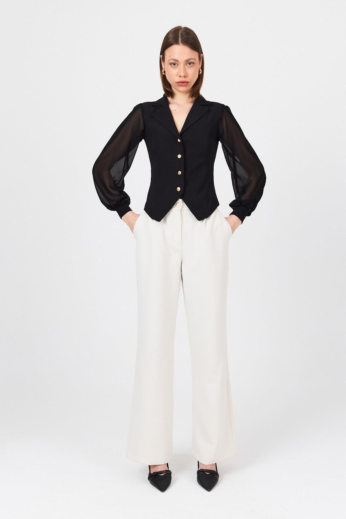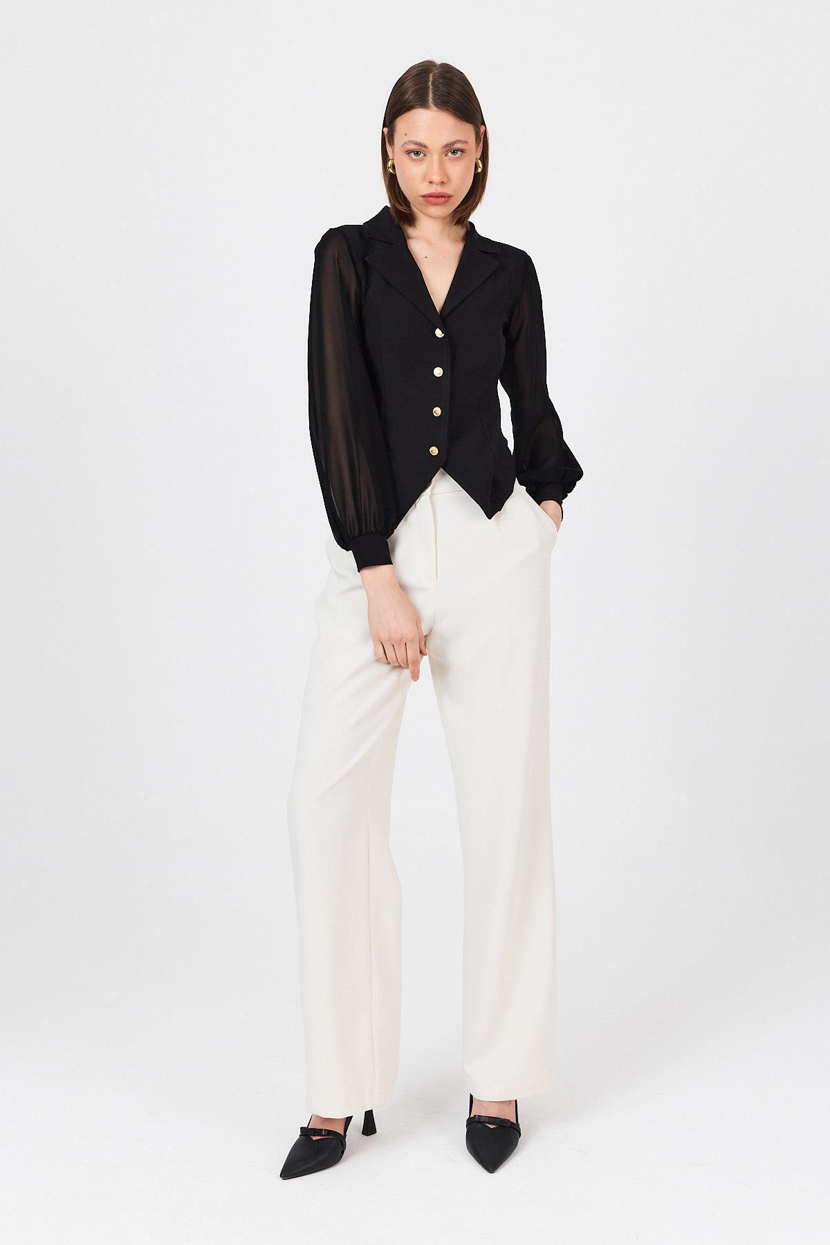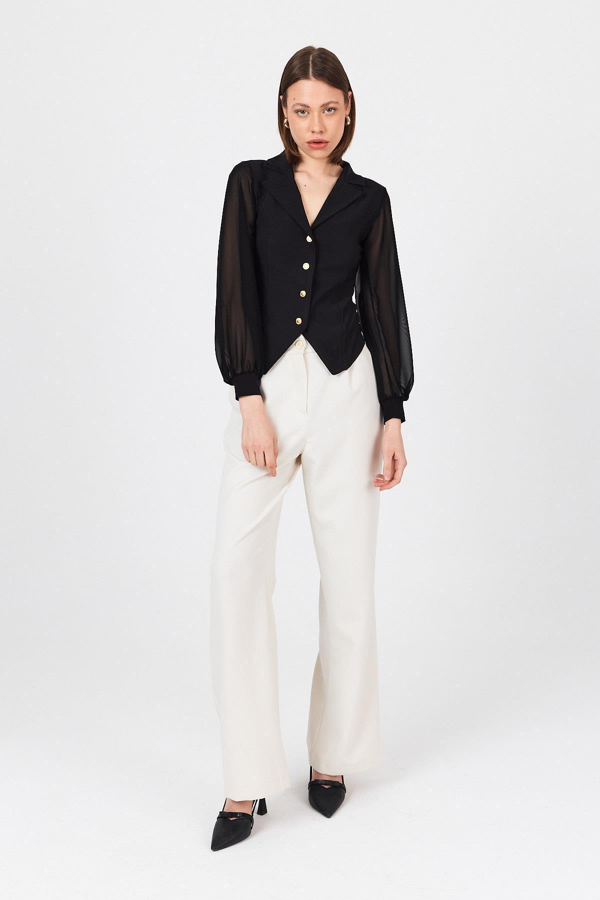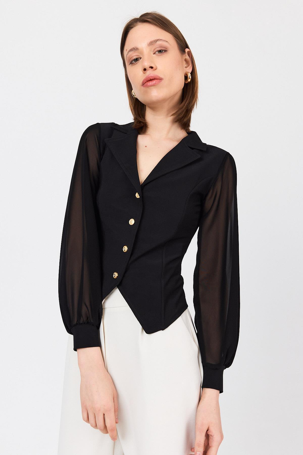 Siyah Kruvaze Yaka Düğmeli Pensli Gömlek 9476 Siyah Kruvaze Yaka Düğmeli Pensli Gömlek 9476 25Y1123UST108 XL