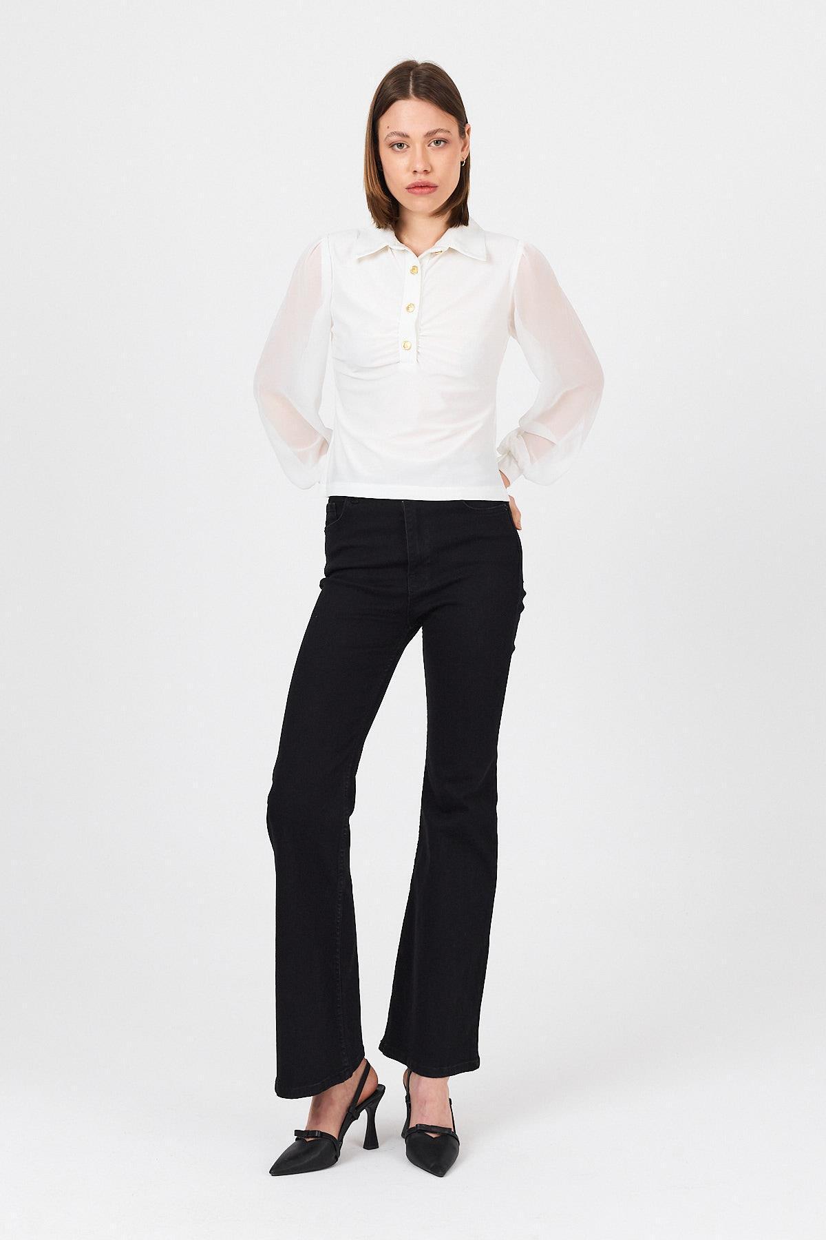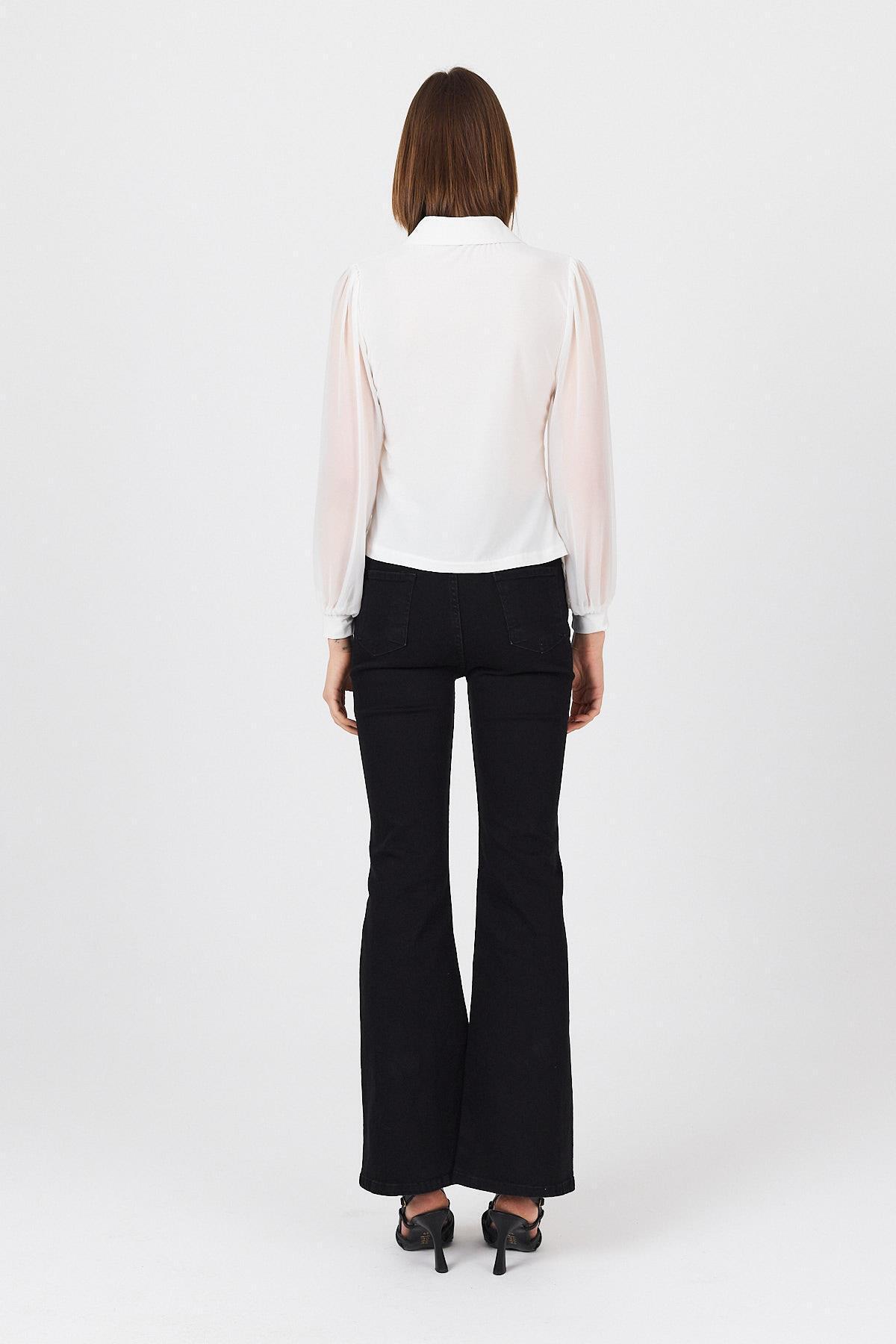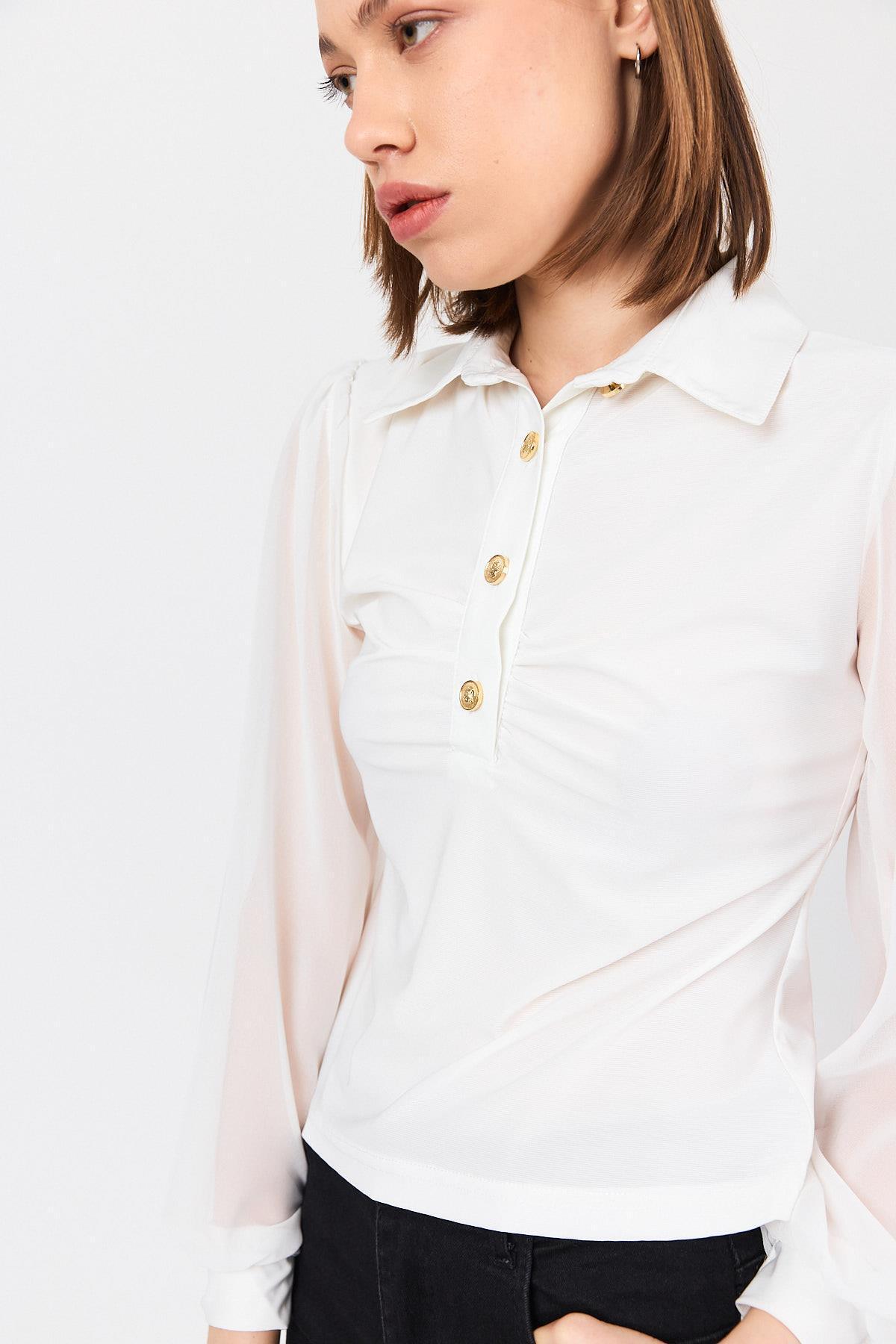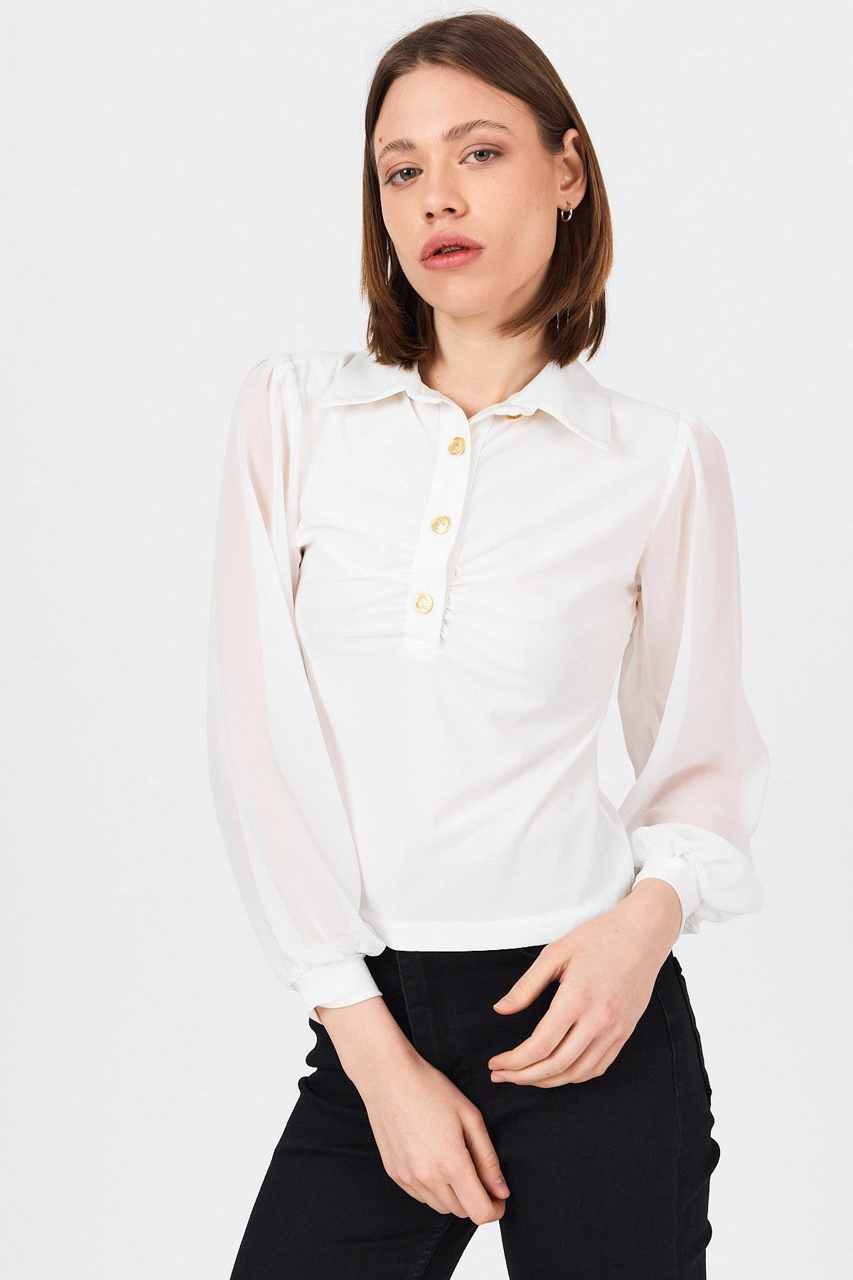 Beyaz Şifon Kollu Gömlek Yaka Bluz 9478 Beyaz Şifon Kollu Gömlek Yaka Bluz 9478 25Y1123UST116 XL