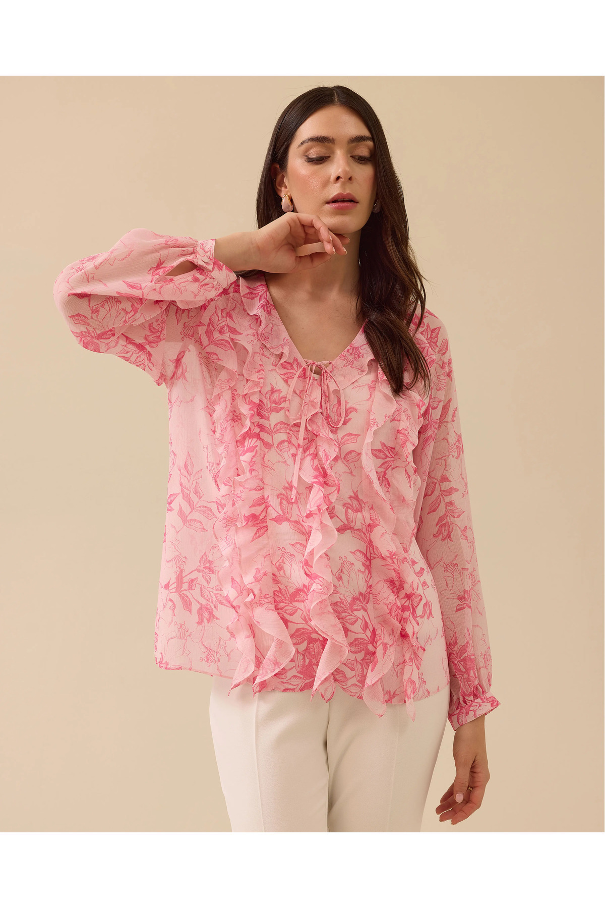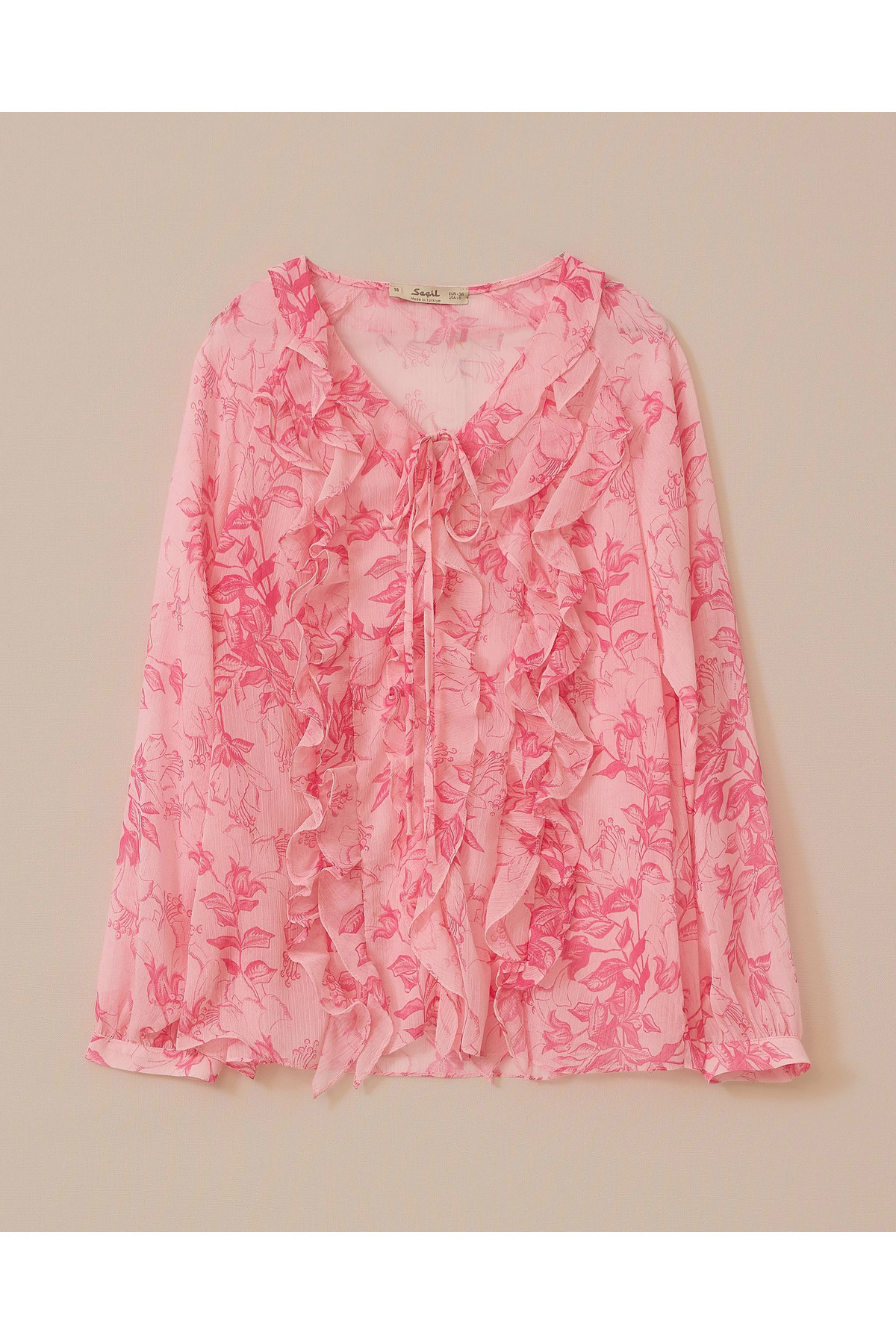 Çiçek Desenli Fırfır Detaylı Şifon Bluz Çiçek Desenli Fırfır Detaylı Şifon Bluz 10002511810005 44