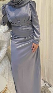 Kolları Püsküllü Kuyruklu Saten Tesettür Abiye Kolları Püsküllü Kuyruklu Saten Tesettür Abiye mhmt2121 42