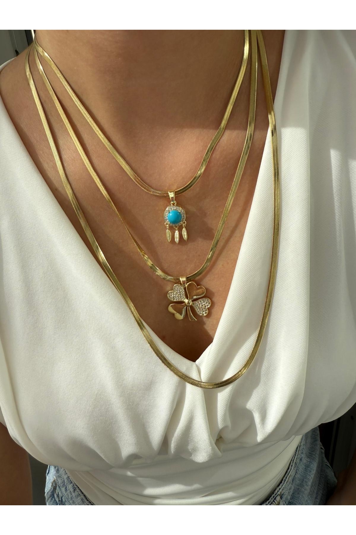 Kadın Gold Renk Üçlü Kombin Kolye-Nazar Boncuklu & Yonca Taşlı Özel Tasarım Kadın Gold Renk Üçlü Kombin Kolye-Nazar Boncuklu & Yonca Taşlı Özel Tasarım BRCMKLYÇK1000 تک سایز