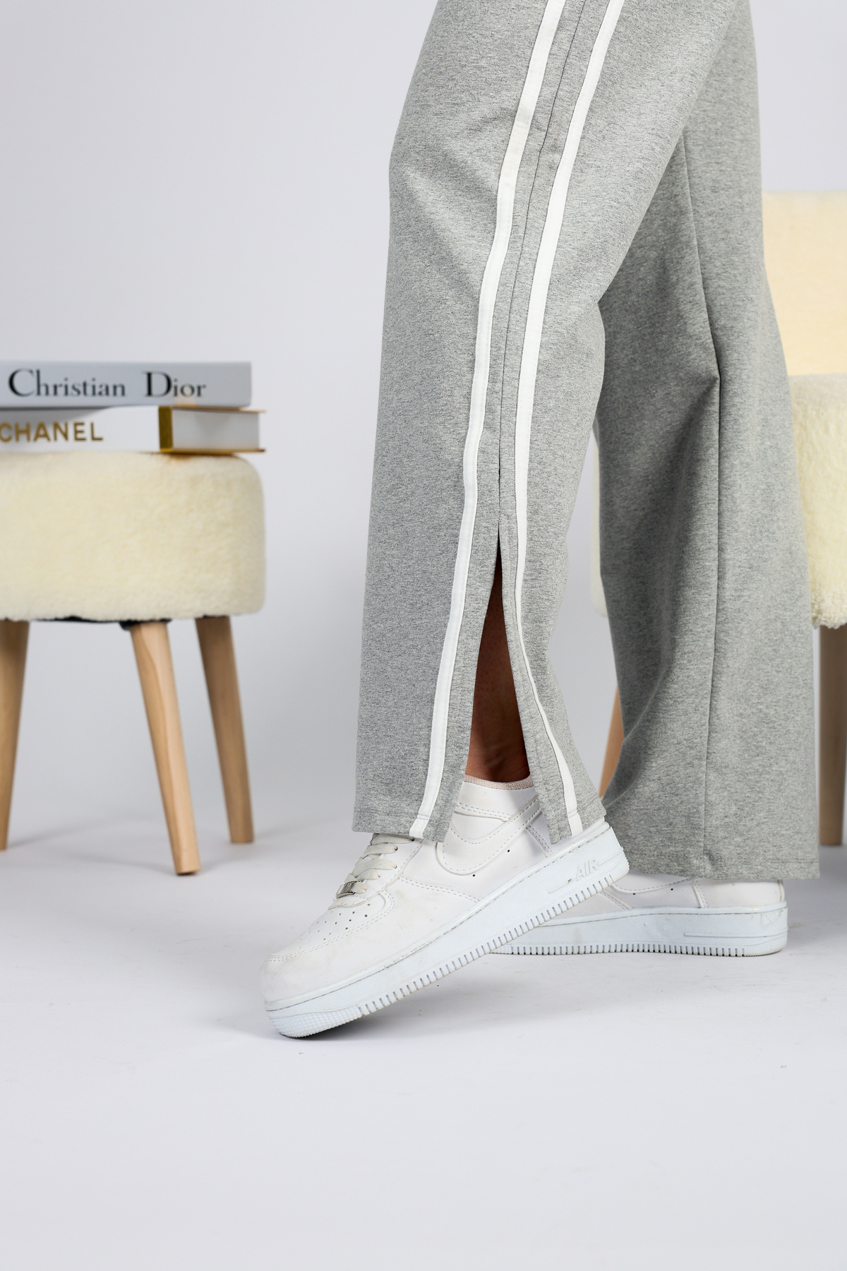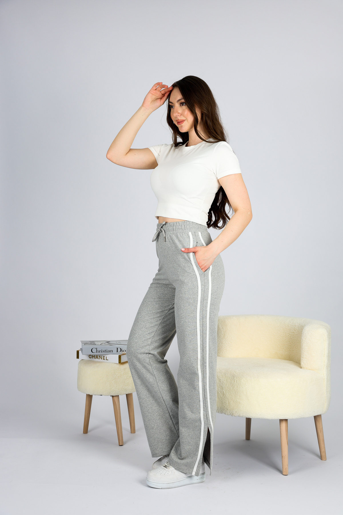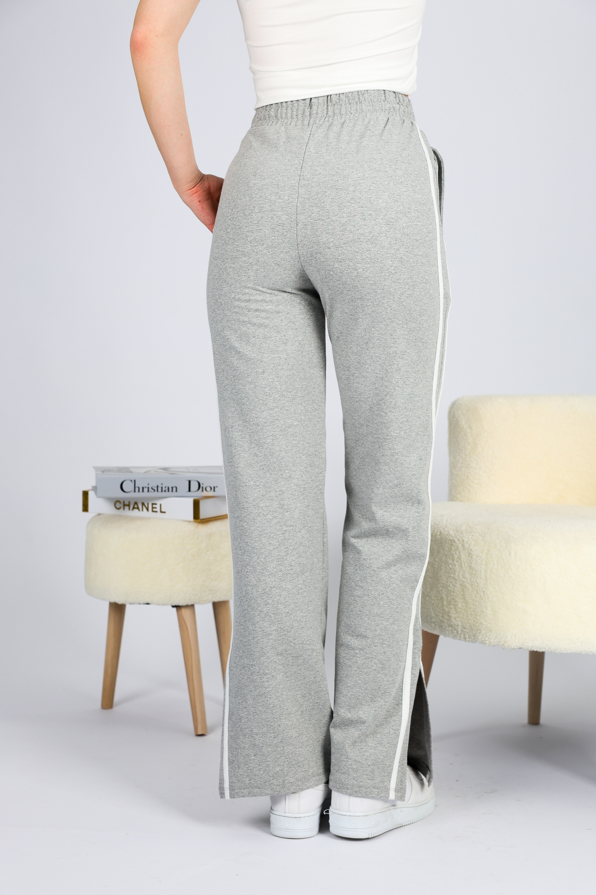 Kadın Gri Şeritli Yırtmaçlı Yüksek Bel Bol Paça Eşofman Altı Kadın Gri Şeritli Yırtmaçlı Yüksek Bel Bol Paça Eşofman Altı 3274_esfmaltsrtliyrtmcli XL