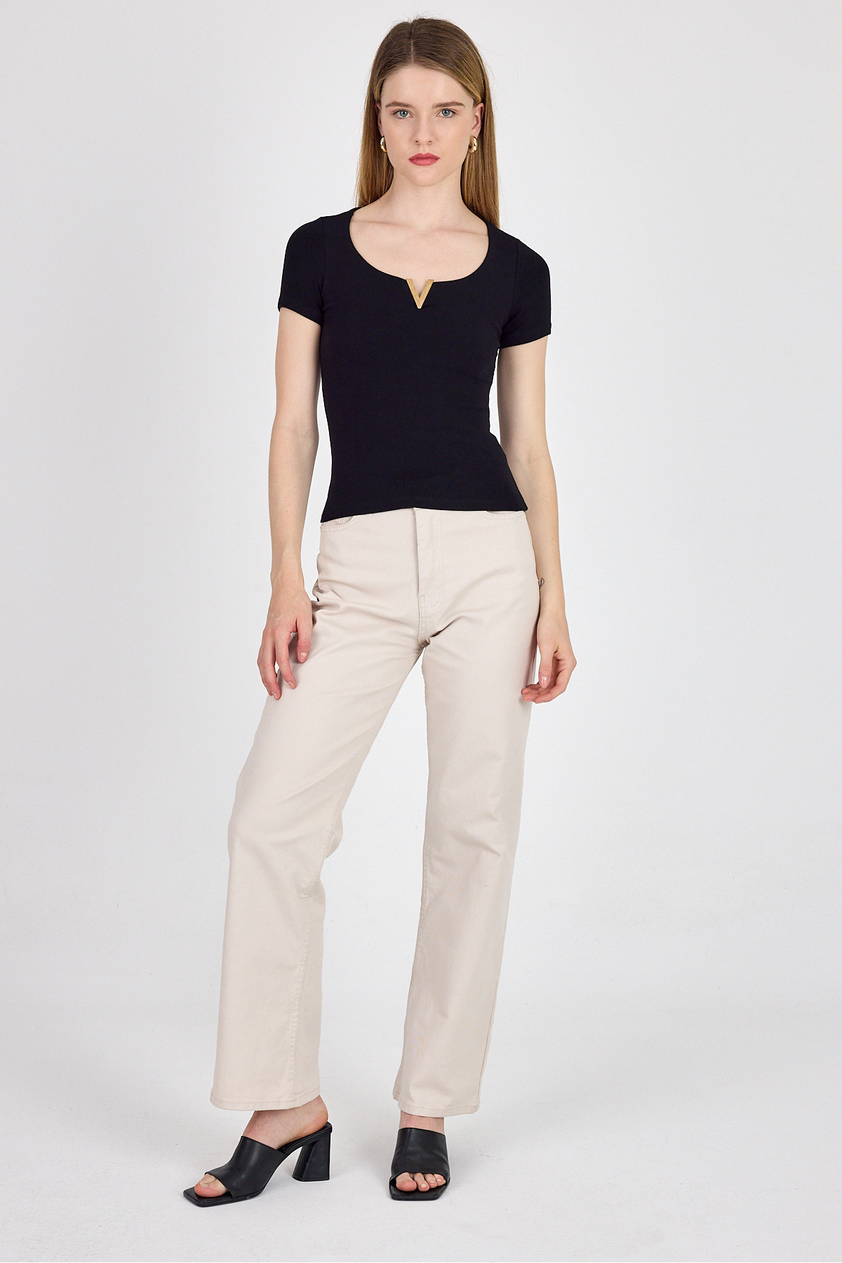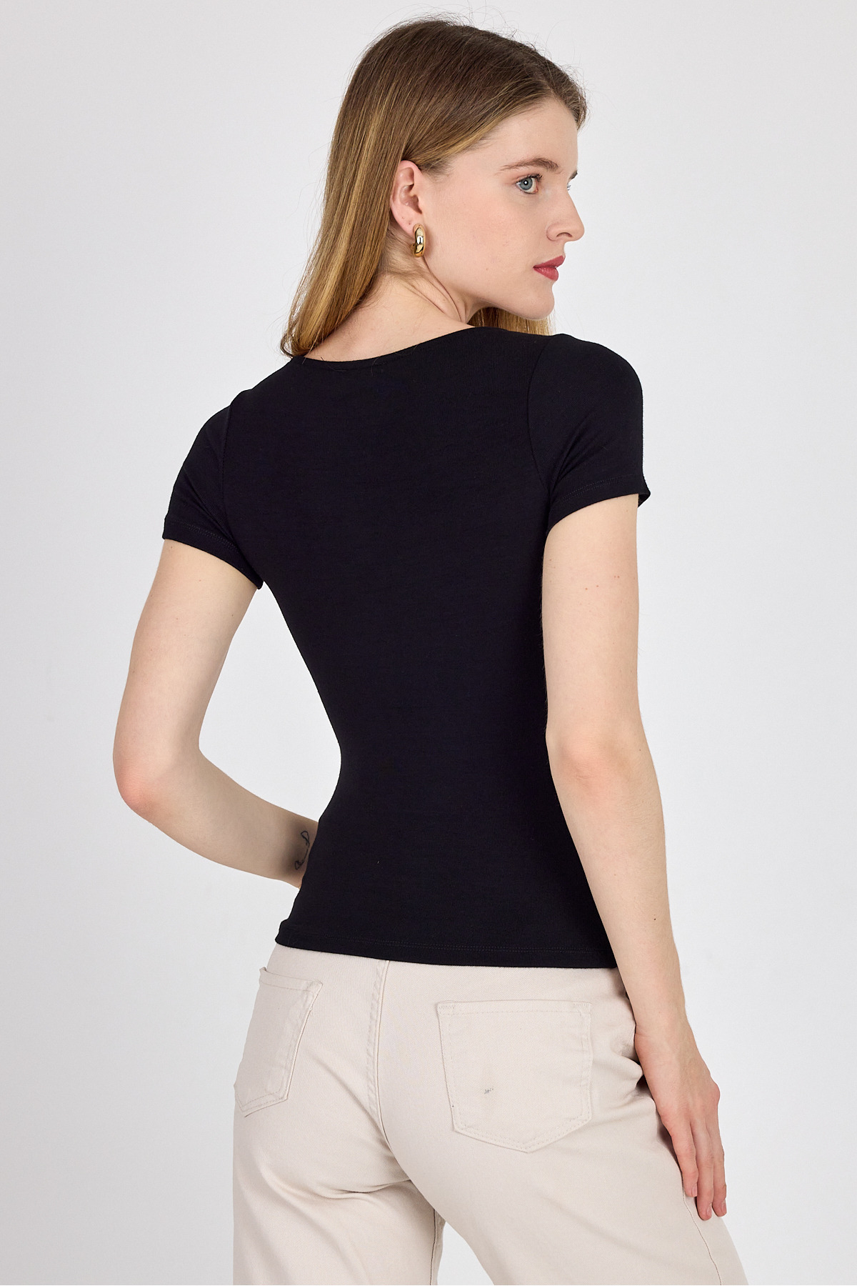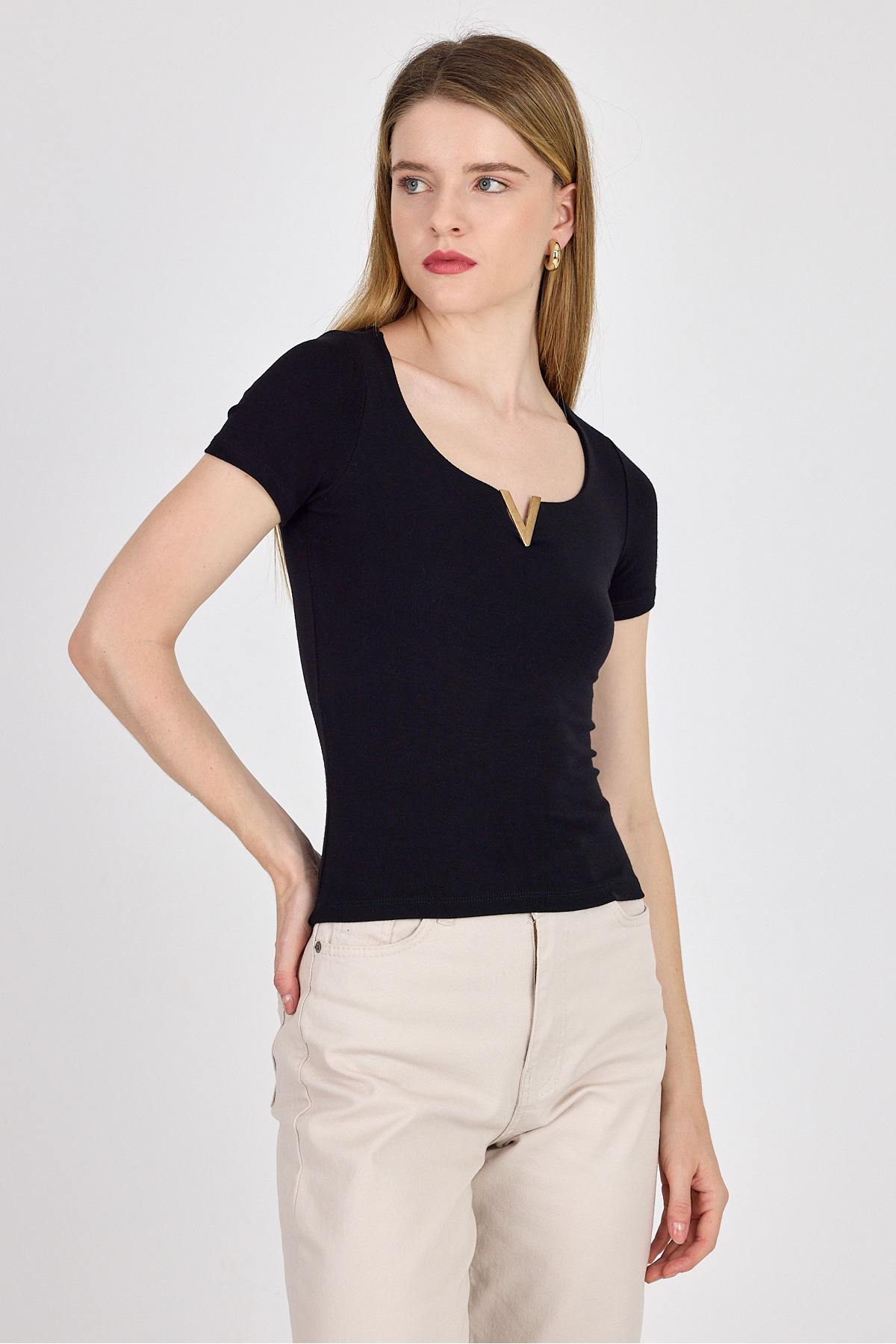 Siyah Gold Aksesuar Detaylı Viskoz/Yumuşak Kumaş Tişört 1460 Siyah Gold Aksesuar Detaylı Viskoz/Yumuşak Kumaş Tişört 1460 25Y1353UST005 XL