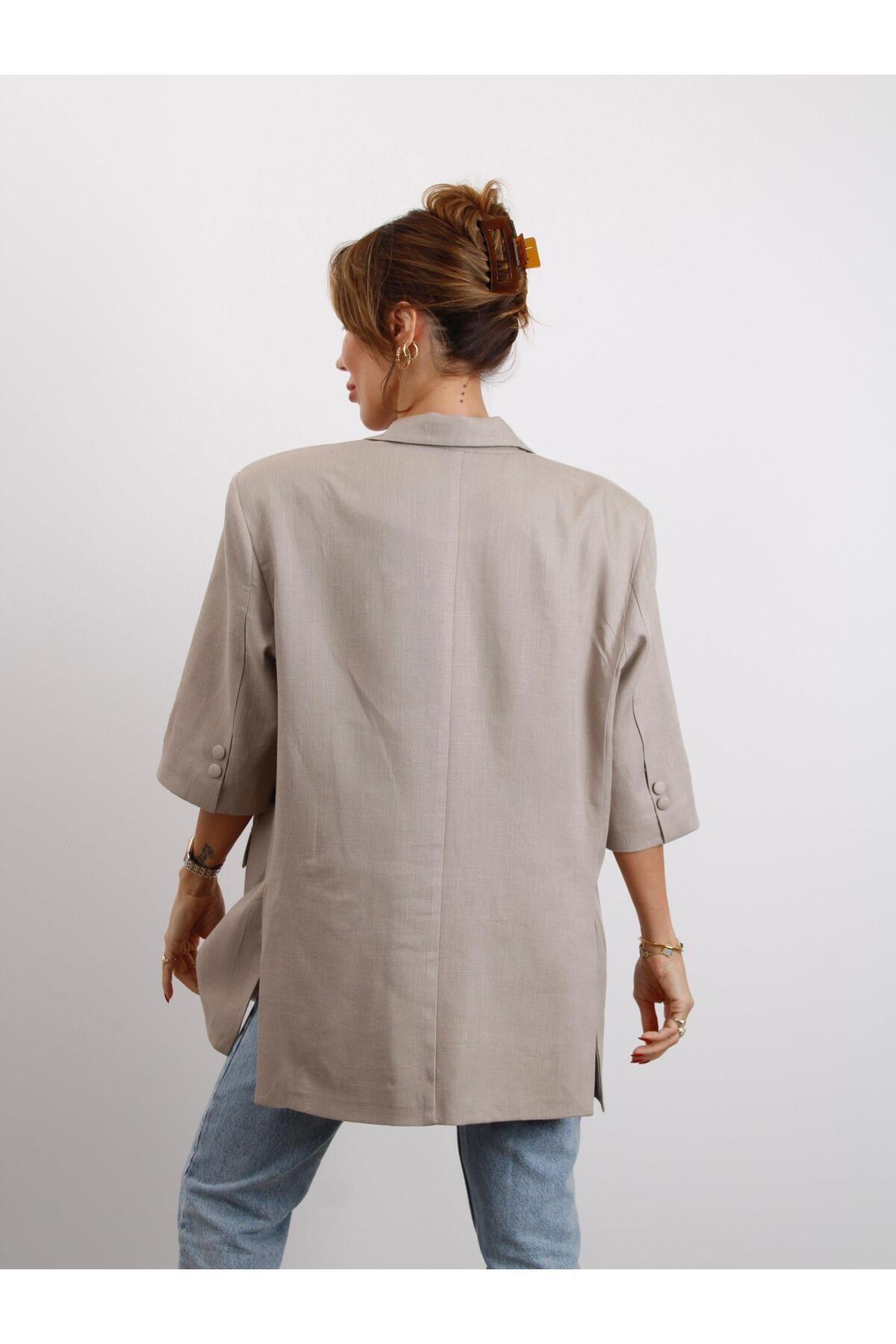 Kadın Kruvaze Yaka Kemerli Vizon Keten Ceket Kadın Kruvaze Yaka Kemerli Vizon Keten Ceket 25YC02090 L