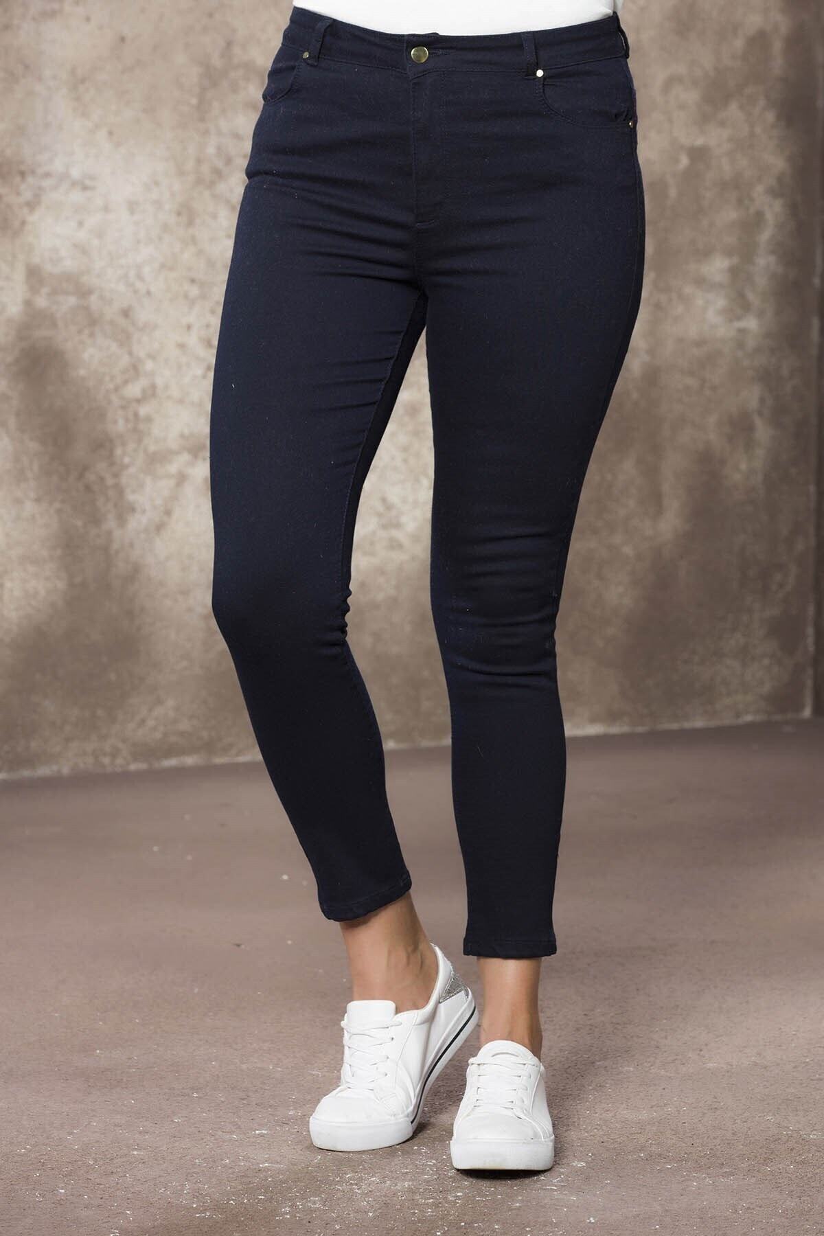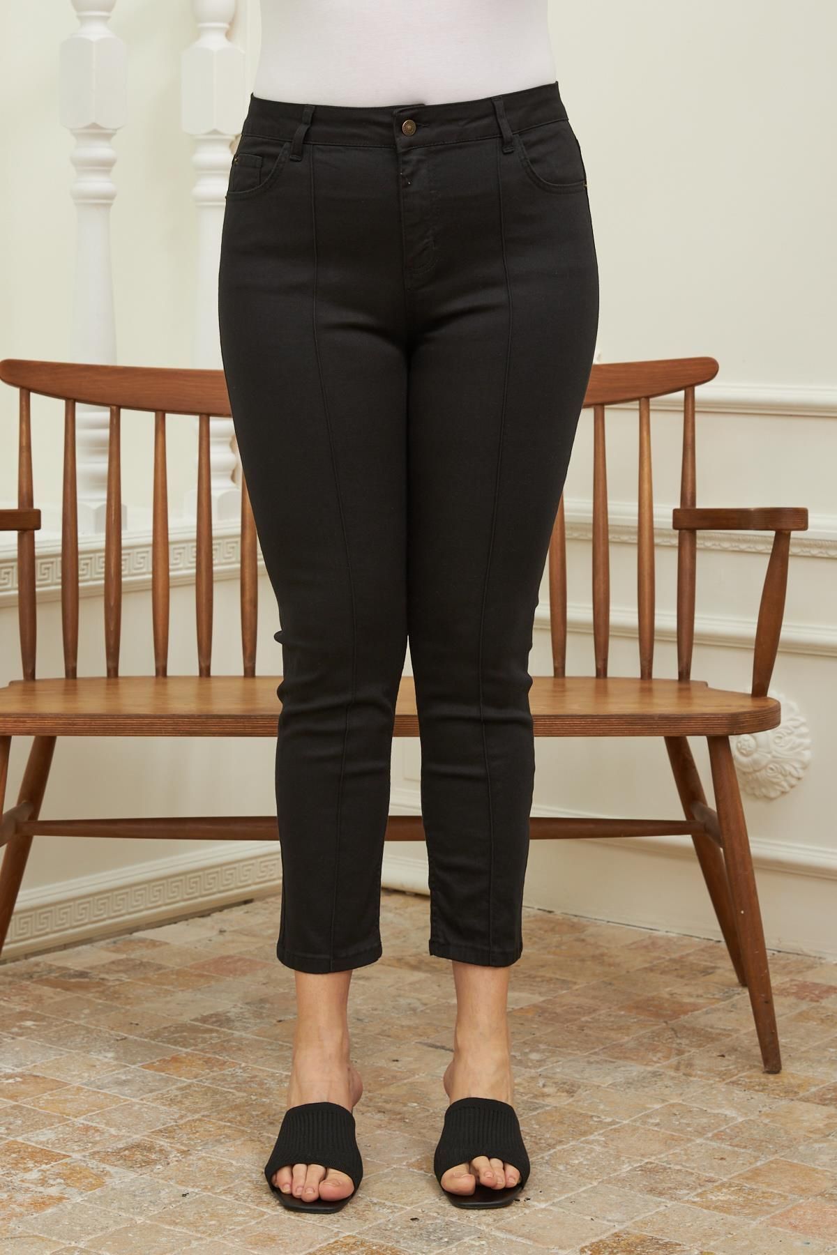 Ön Paça Yırtmaçlı Süper Likralı Büyük Beden Akar Kadın Pantolon Ön Paça Yırtmaçlı Süper Likralı Büyük Beden Akar Kadın Pantolon 8176-30 58