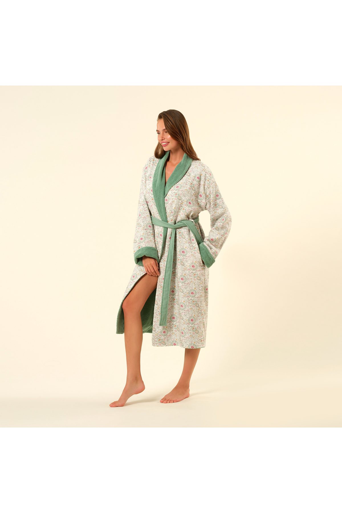 Tabea Şal Yaka Müslin Pamuk %100 Pamuk Bornoz - Yeşil Tabea Şal Yaka Müslin Pamuk %100 Pamuk Bornoz - Yeşil 9922 XL