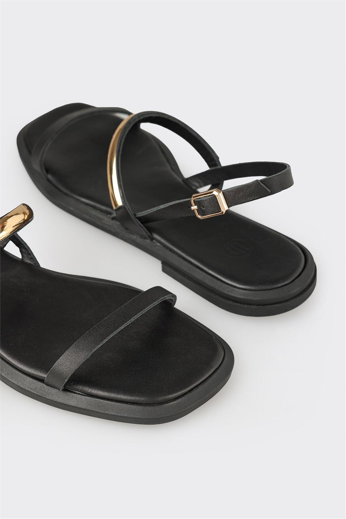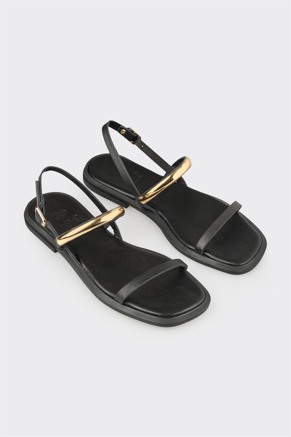 Siyah Deri Kadın Düz Sandalet Siyah Deri Kadın Düz Sandalet MERACA 40
