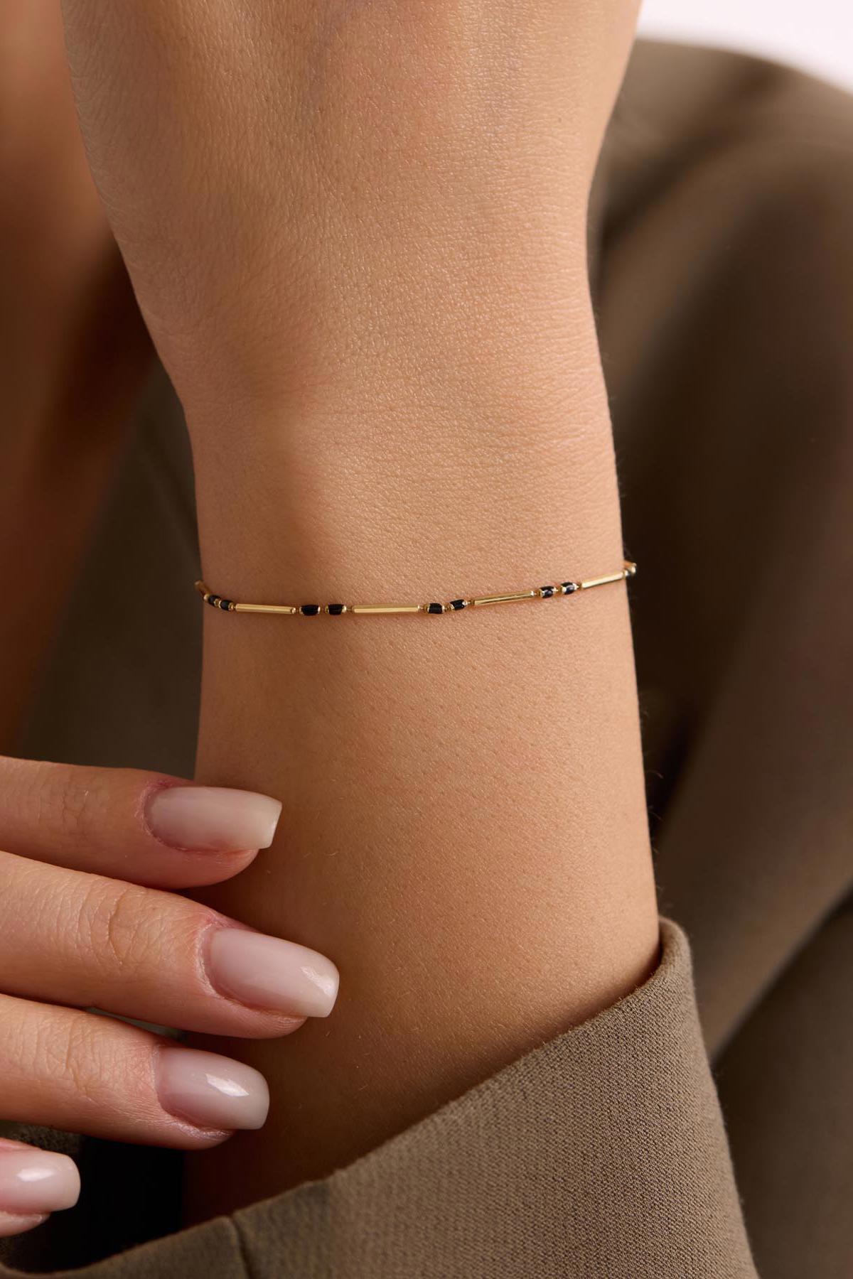 14 Ayar Altın Siyah Mineli Çubuk Bileklik 14 Ayar Altın Siyah Mineli Çubuk Bileklik 8692370460571 21 cm