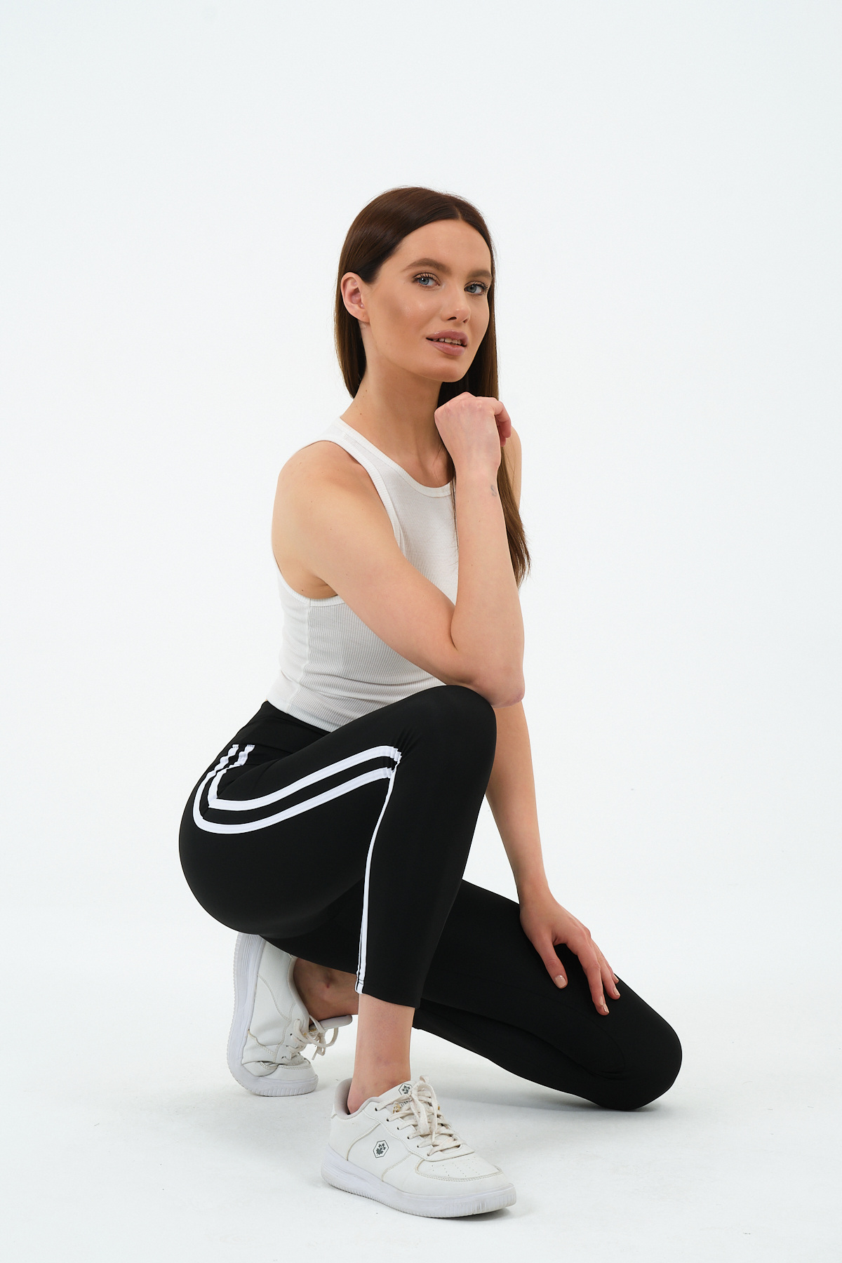 Çift Şeritli Sporcu Taytı Kadın Siyah Sporcu Taytı Çift Şeritli Sporcu Taytı Kadın Siyah Sporcu Taytı 2320 3XL