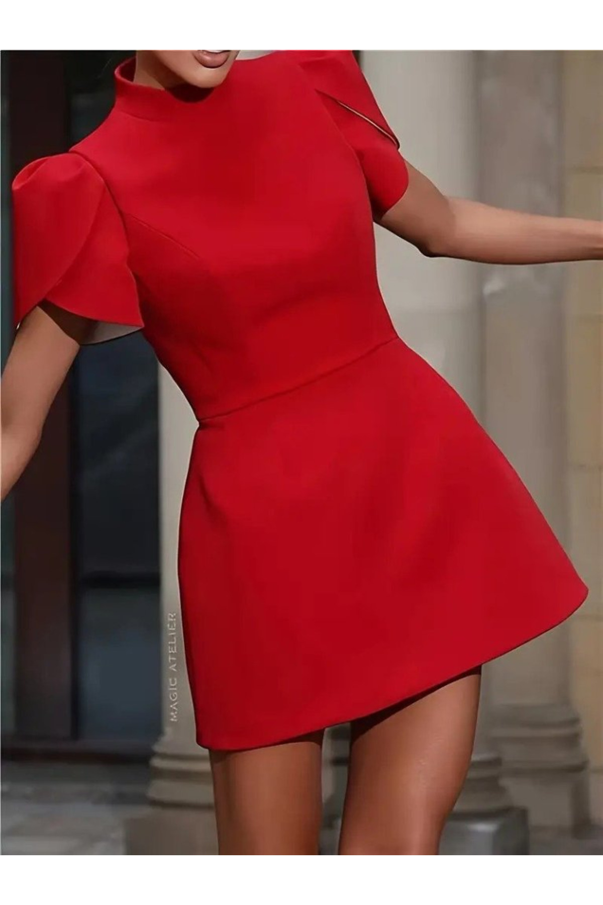 Sırt Kelebek Dekolteli Fiyonk Detay Tasarım Kısa Kollu Mini Elbise Sırt Kelebek Dekolteli Fiyonk Detay Tasarım Kısa Kollu Mini Elbise 46100 2XL-3XL