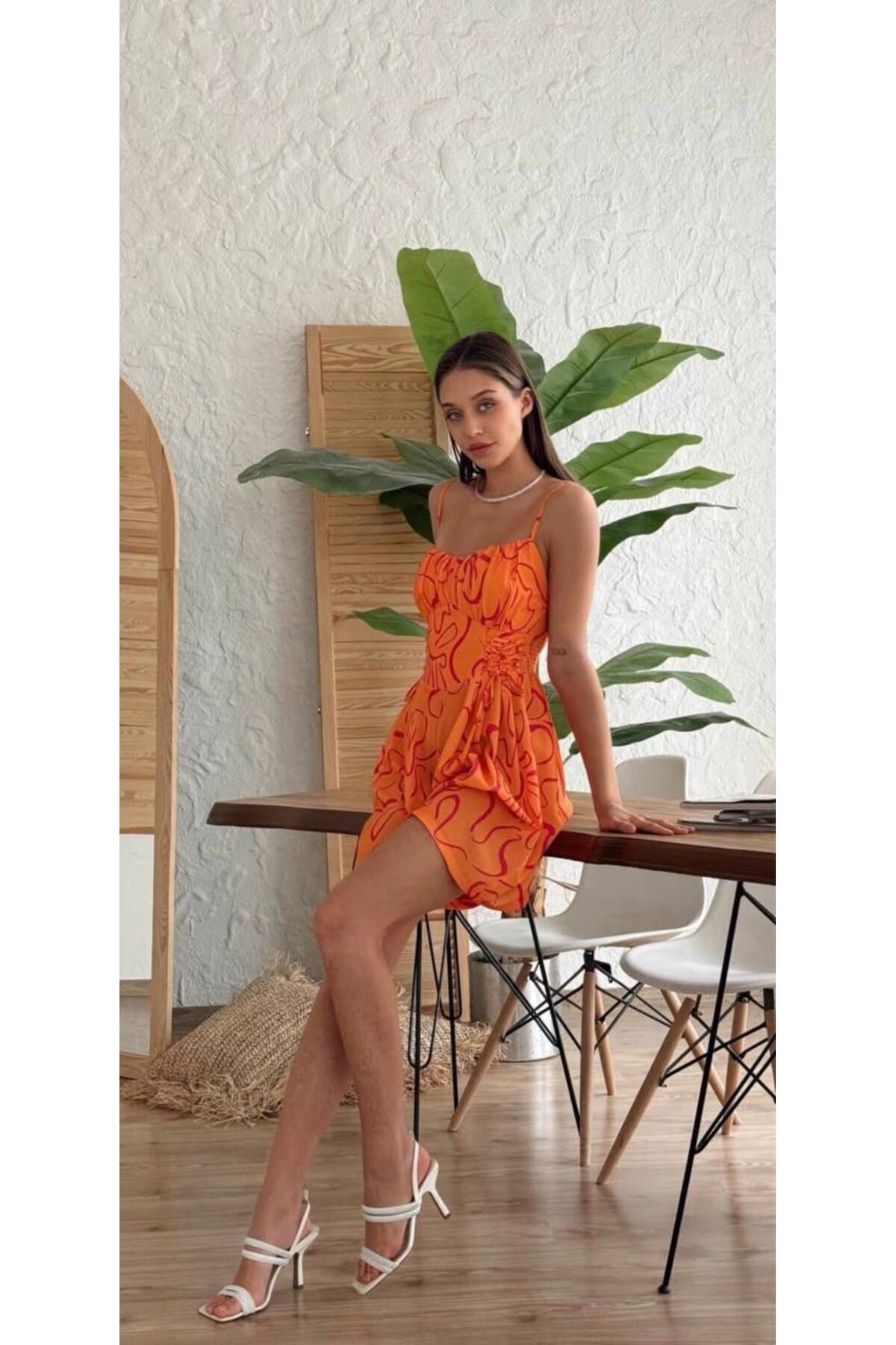 Çiçek Desen Straples Boyun Bağlama Detaylı Cutout Mini Elbise Çiçek Desen Straples Boyun Bağlama Detaylı Cutout Mini Elbise CYLSS25-084 42