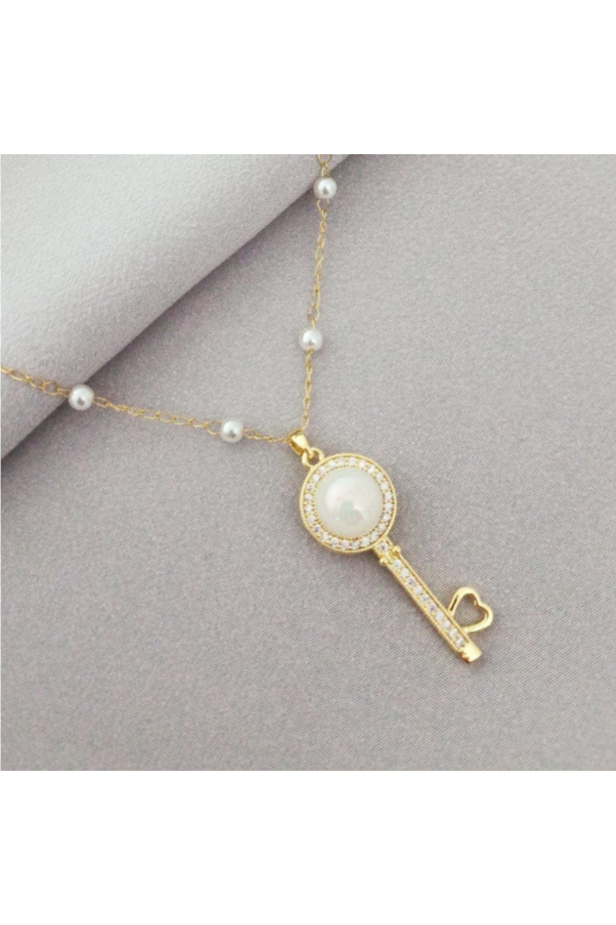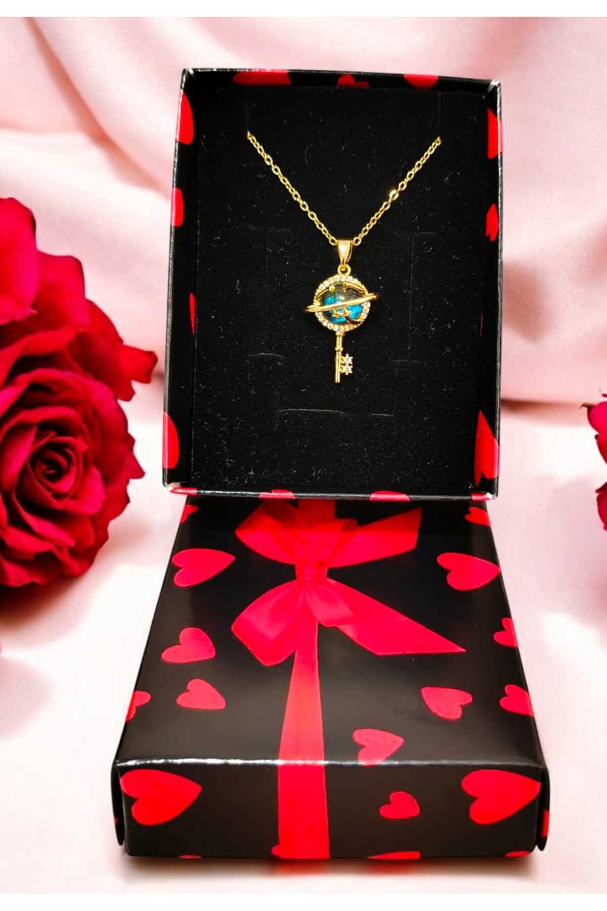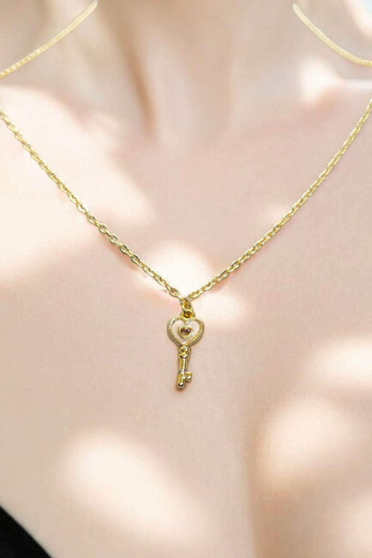 18k Altın Kaplama Çelik Kalp Ve Anahtar Kolye 18k Altın Kaplama Çelik Kalp Ve Anahtar Kolye CKO9 45 cm