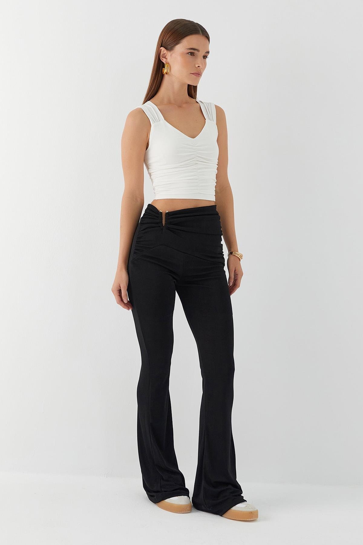 Büzgü Detaylı Pantolon Siyah Büzgü Detaylı Pantolon Siyah MN0003_001 L