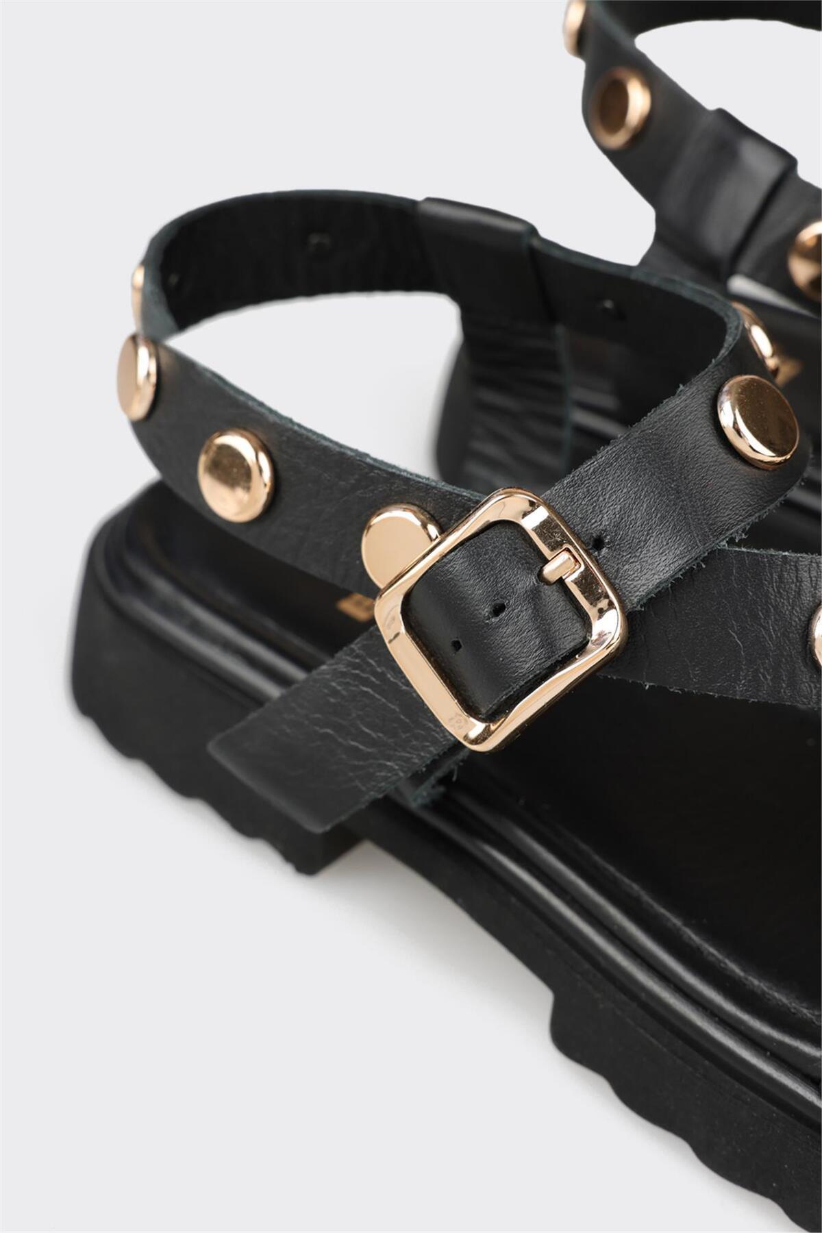 Siyah Deri Kadın Düz Sandalet Siyah Deri Kadın Düz Sandalet ARTAPA 40