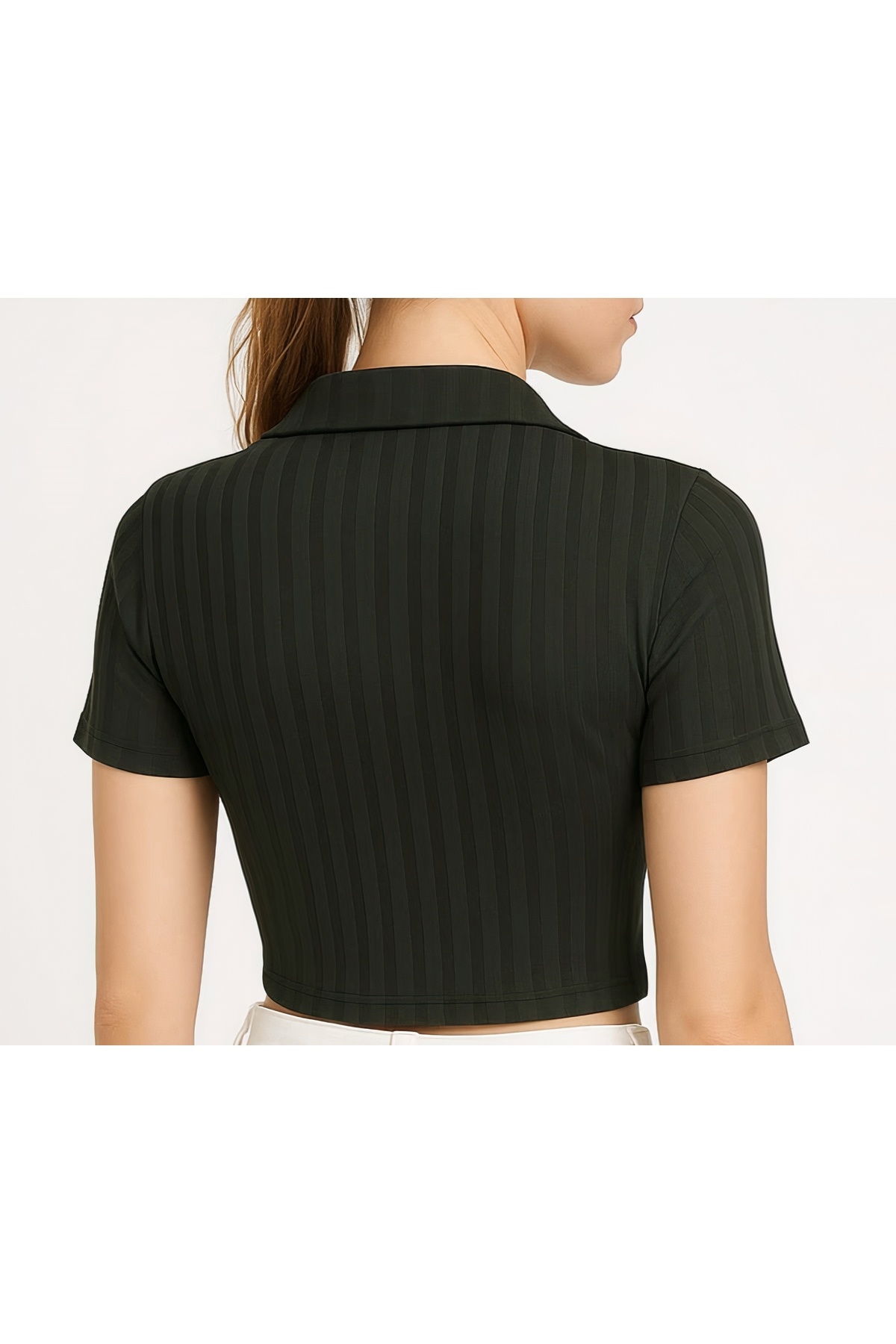YARIM FERMUAR DİK YAKA KISA KOLLU CROP YARIM FERMUAR DİK YAKA KISA KOLLU CROP ALM5009 XL