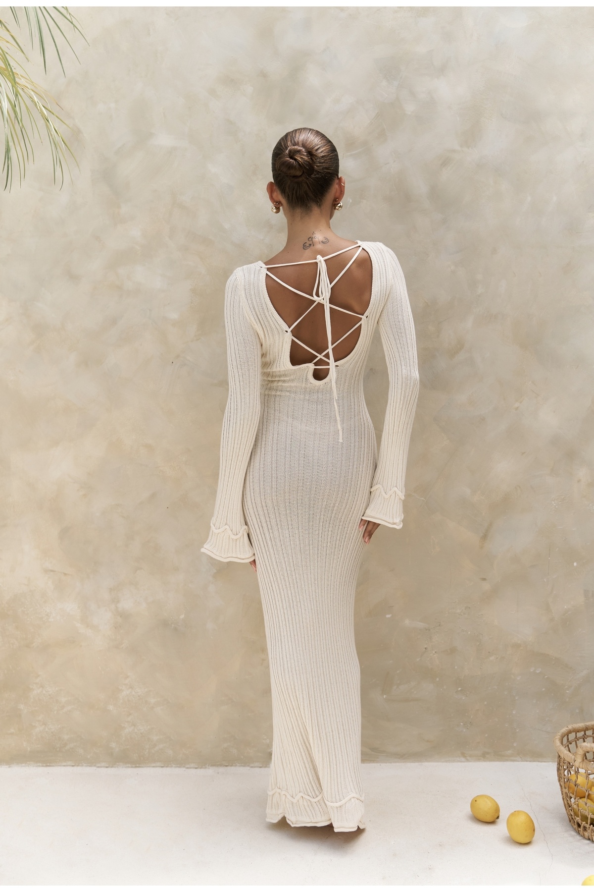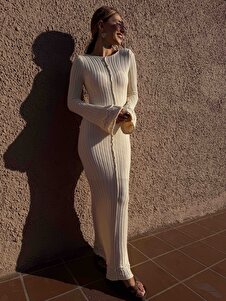 Matias Sırt Dekolteli Ekru Triko Uzun Elbise Matias Sırt Dekolteli Ekru Triko Uzun Elbise B31S3629W1 Standart