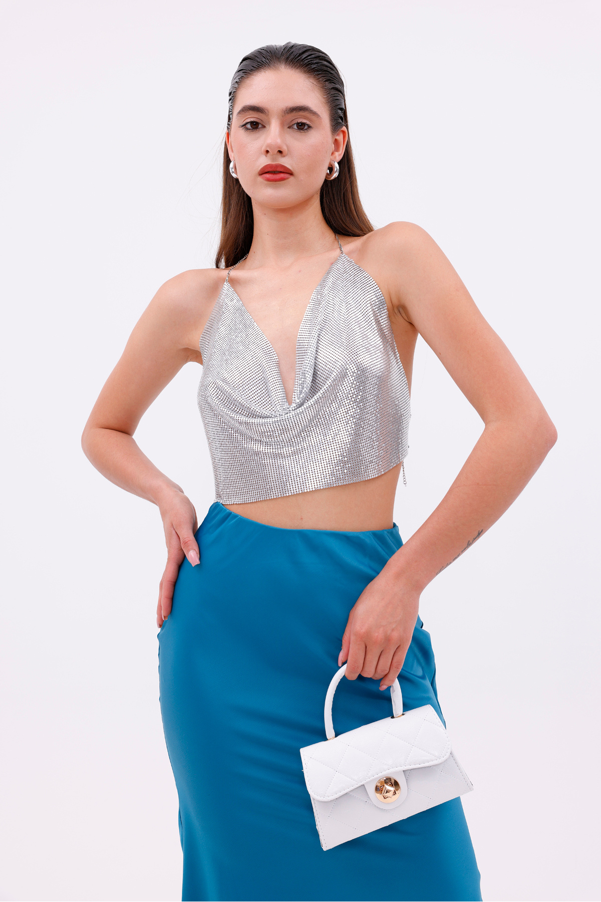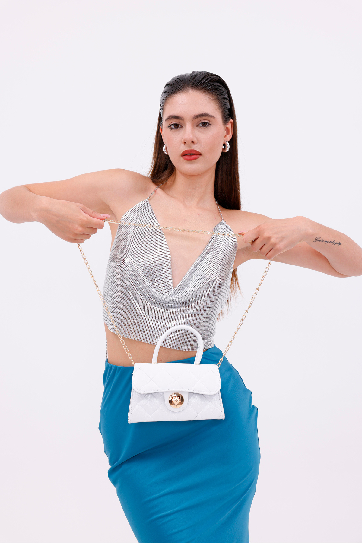 Kilitli Kapitoneli Kadın El Omuz Çantası Beyaz Kilitli Kapitoneli Kadın El Omuz Çantası Beyaz kilitli تک سایز