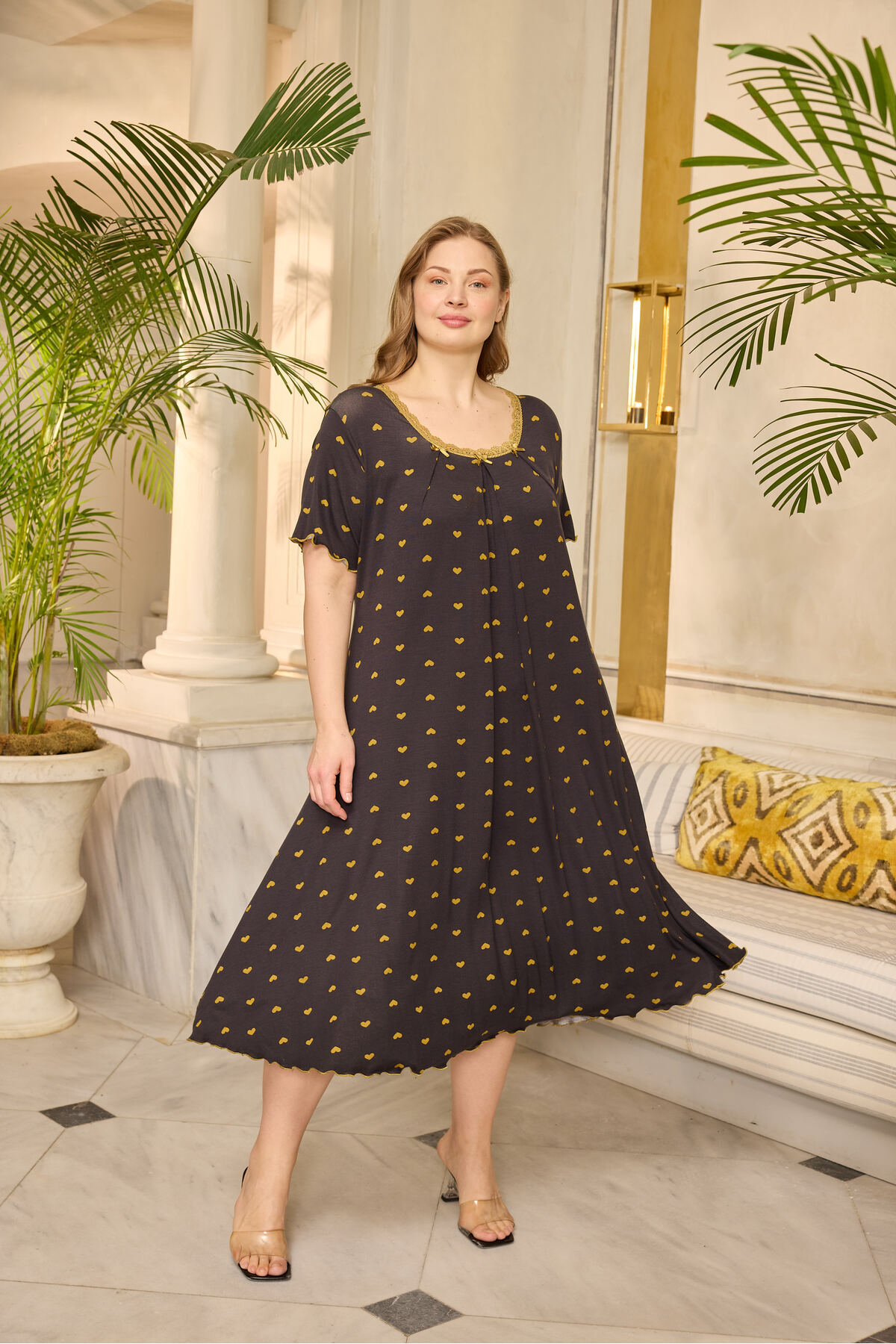 Kalp Desenli Lacivert Ring Viskon Kısa Kol Elbise Kalp Desenli Lacivert Ring Viskon Kısa Kol Elbise 1003 5XL