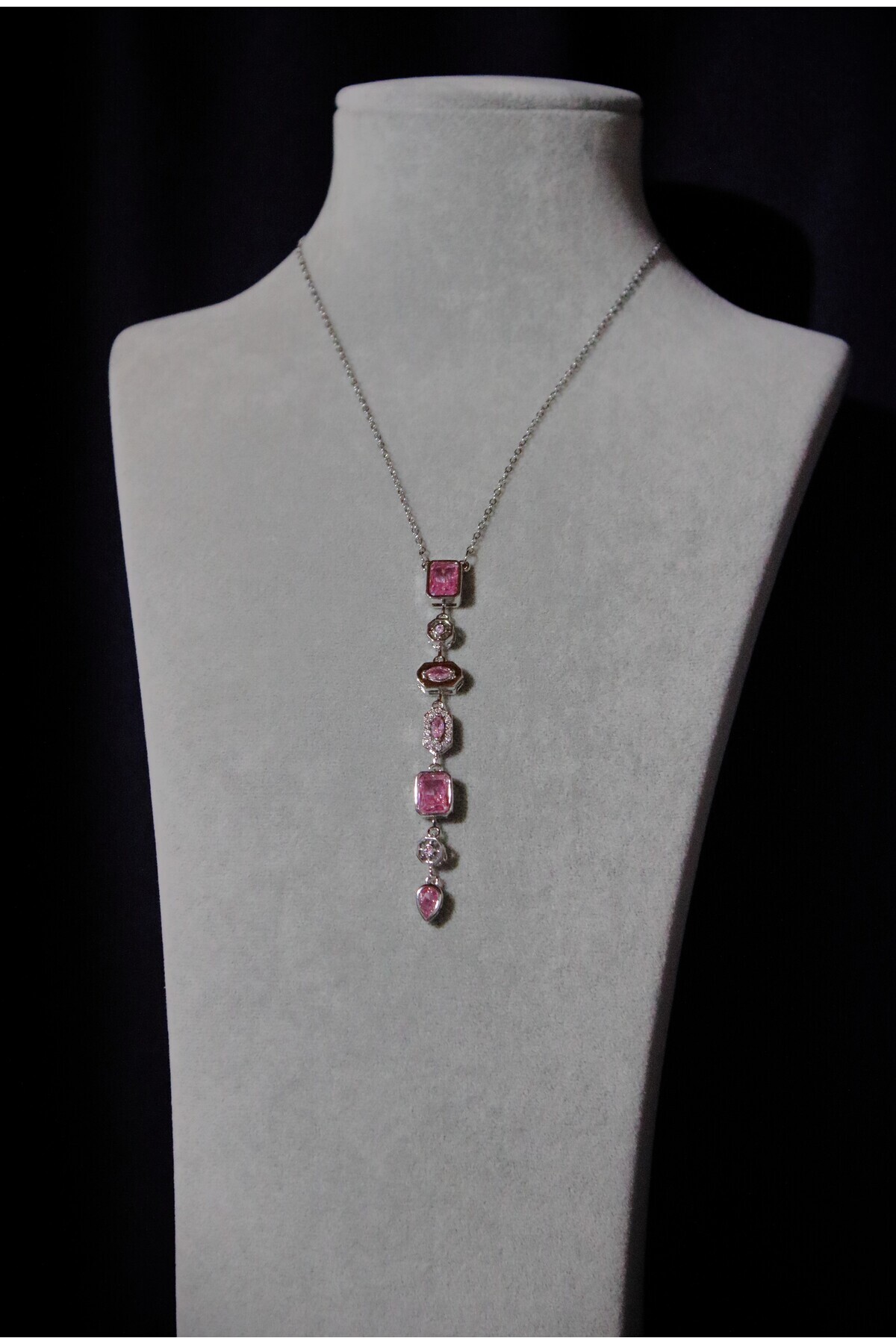 Pembe Taşlı Özel Tasarım Silver Y Kolye Pembe Taşlı Özel Tasarım Silver Y Kolye yk44 0