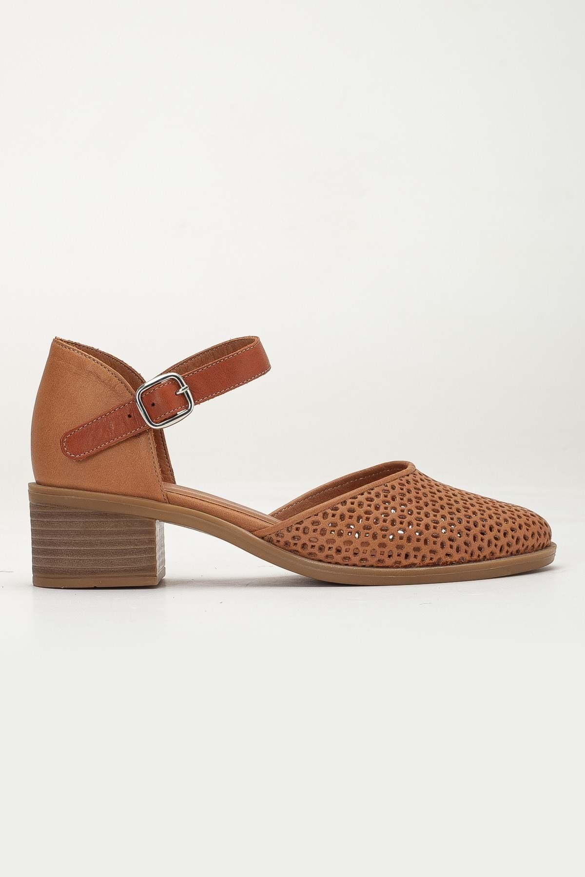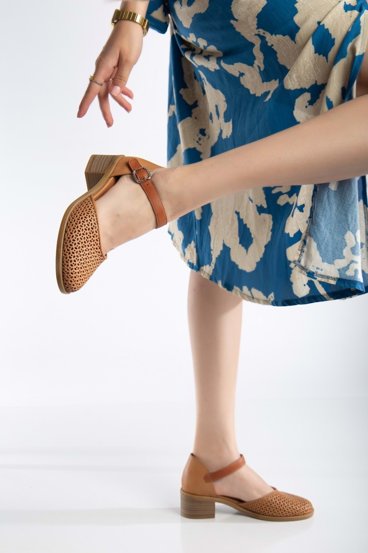 Kadın Hakiki Deri Burnu Kapalı Delikli Sandalet - Taba Kadın Hakiki Deri Burnu Kapalı Delikli Sandalet - Taba 3375 42