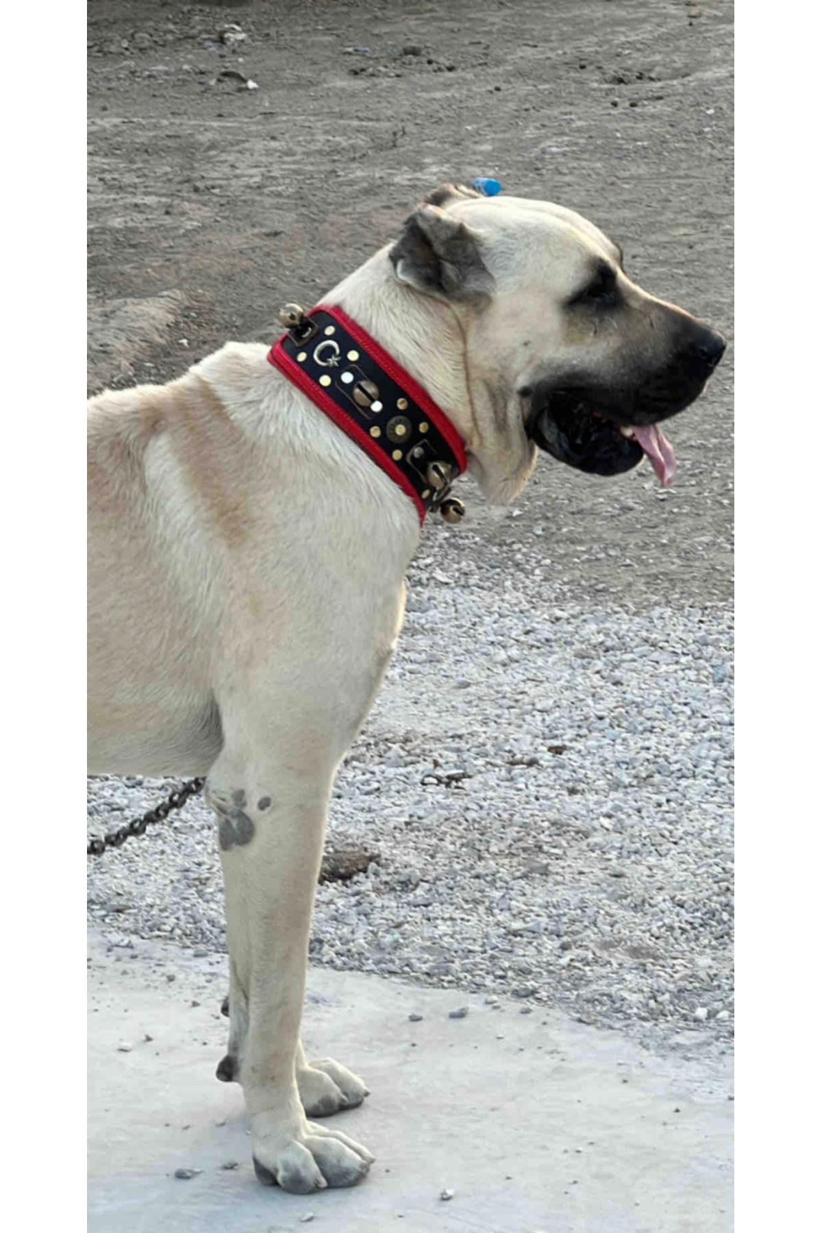 Kangal Köpek Tasması Hakiki Deri Tek Zilli Kırmızı Şeritli Büyük Irk Kangal Köpek Tasması Hakiki Deri Tek Zilli Kırmızı Şeritli Büyük Irk SürmeliTasmaTekZil1 تک سایز