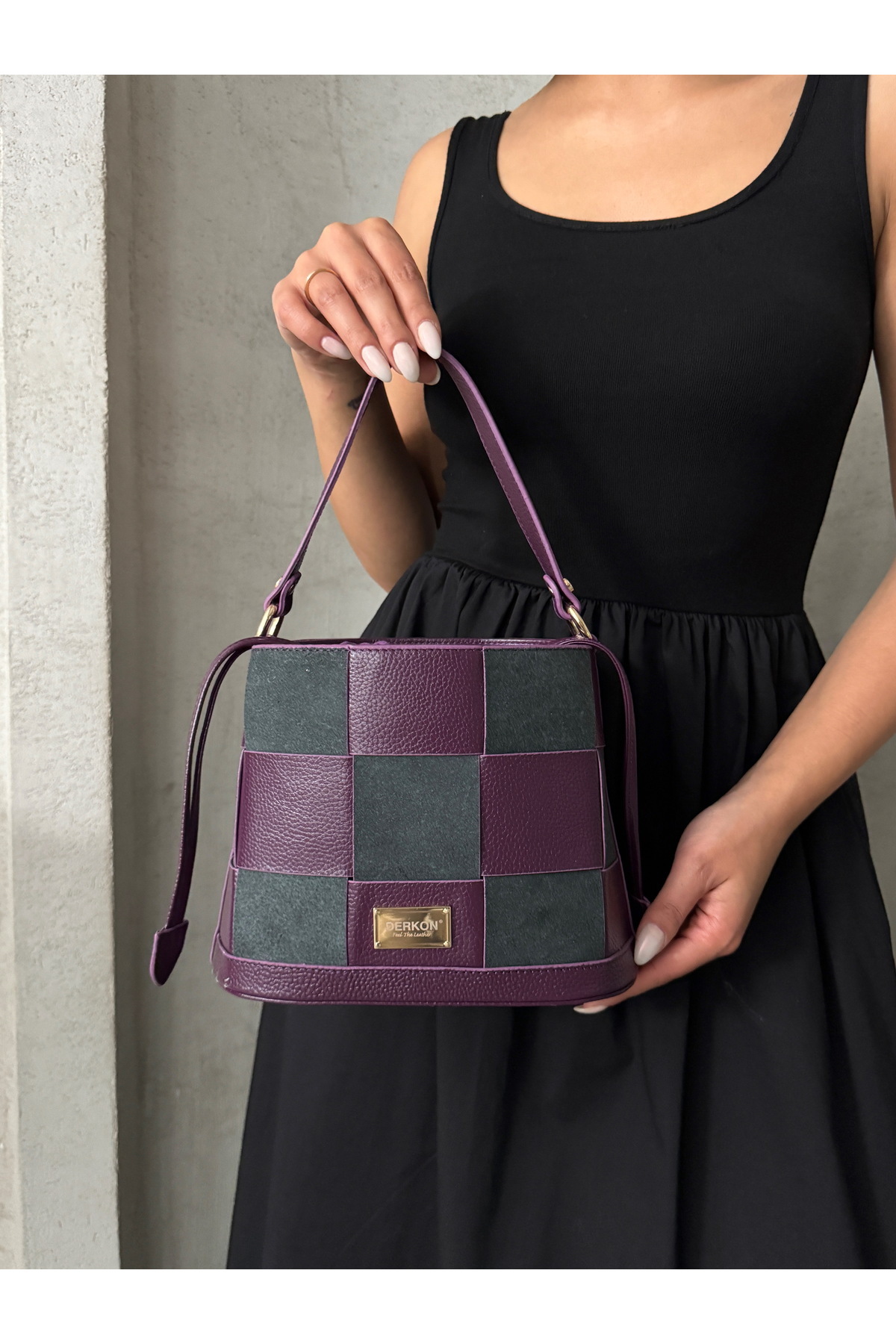 Hakiki Deri Tezza Model Çapraz Ve Kol Çantası Mor Renk Hakiki Deri Tezza Model Çapraz Ve Kol Çantası Mor Renk TEZZA تک سایز
