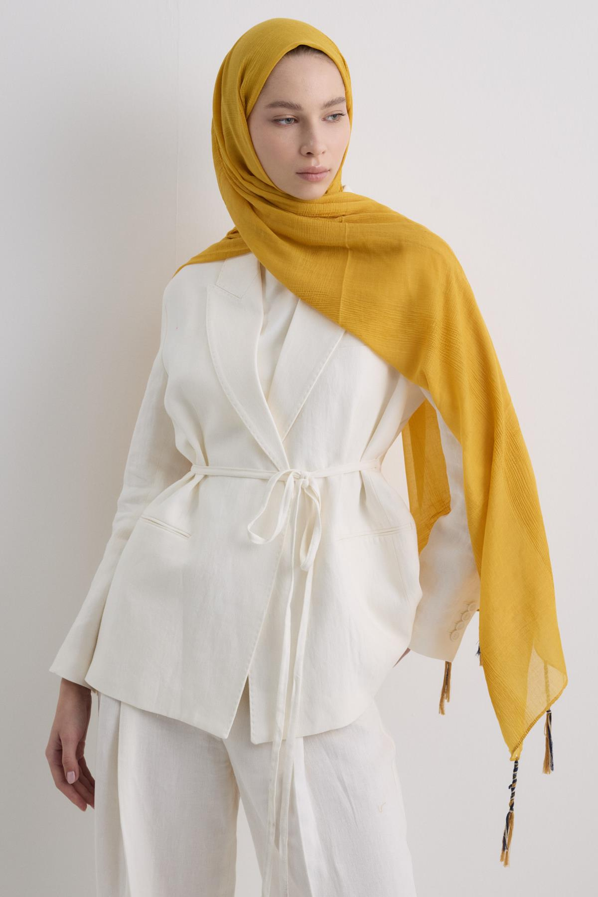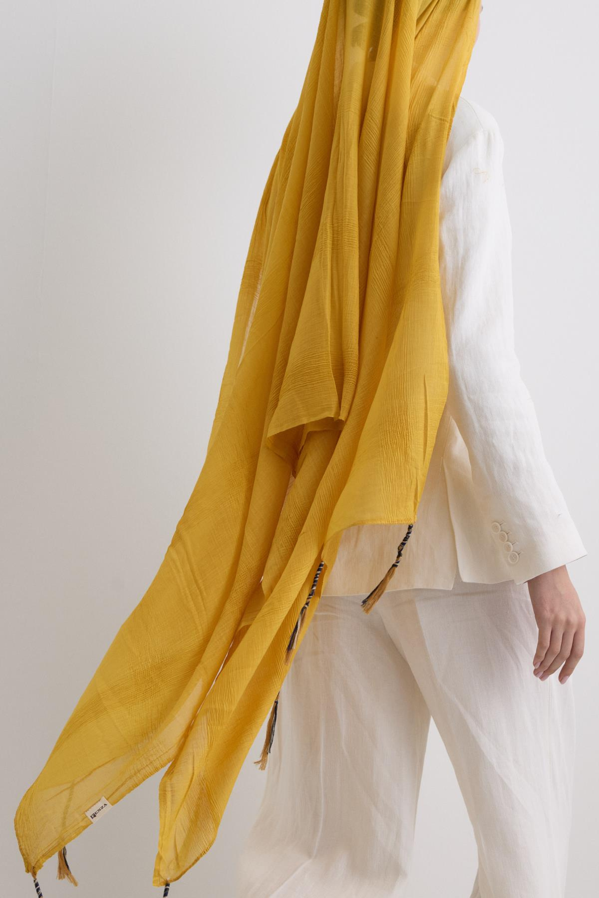BRICE SARI UZUN SAÇAK PÜSKÜLLÜ PAMUKLU ŞAL BRICE SARI UZUN SAÇAK PÜSKÜLLÜ PAMUKLU ŞAL NWFNZB4 200 x 100