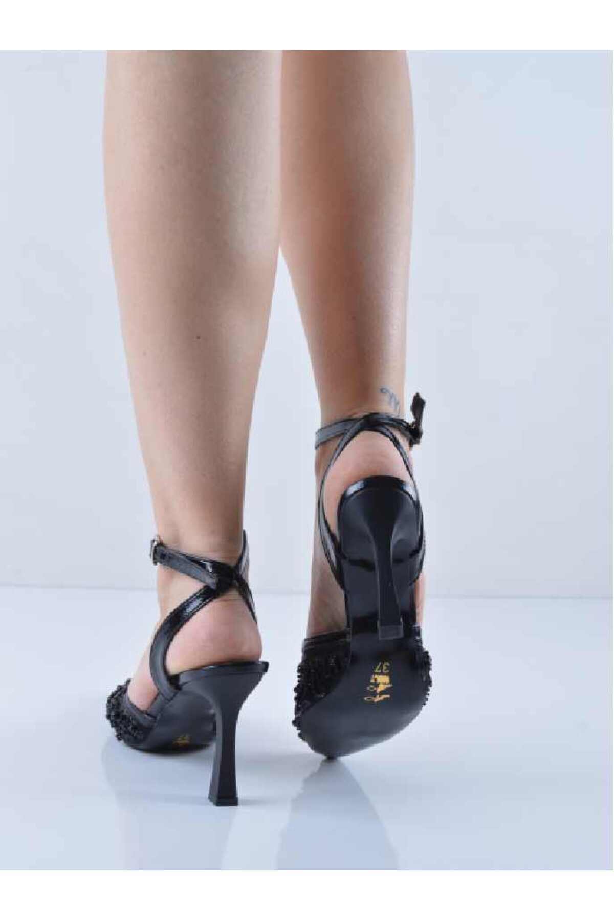 Siyah Cilt Tüllü Bilekten Bağlamalı İnce Belli Topuk Abiye Ayakkabı Siyah Cilt Tüllü Bilekten Bağlamalı İnce Belli Topuk Abiye Ayakkabı ACTİBBA 42