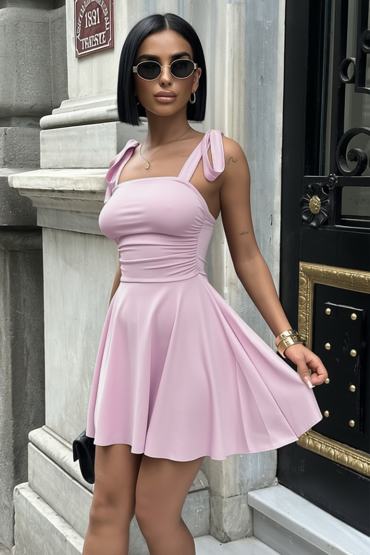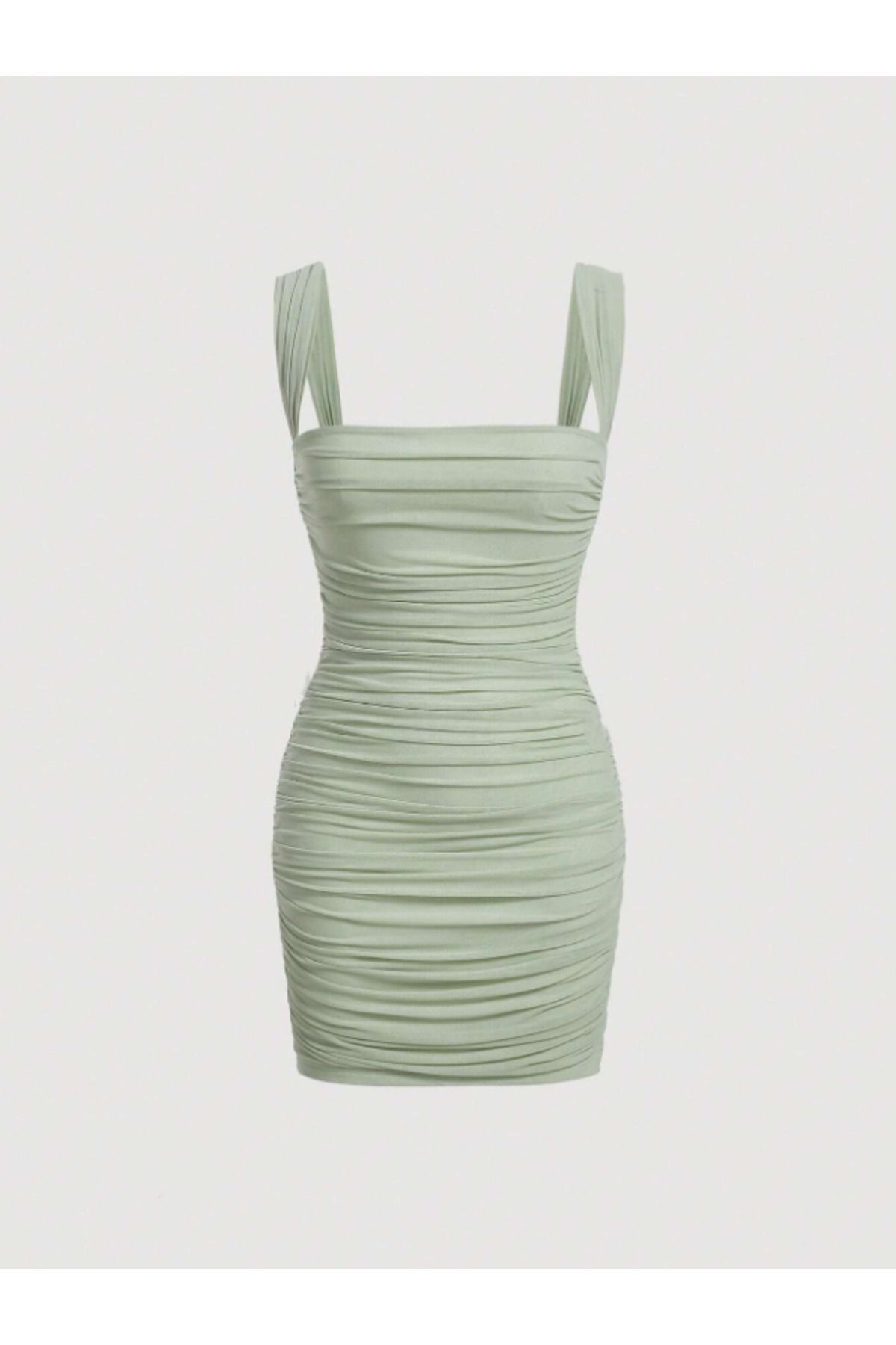 Lında - Kalın Askılı Büzgü Drapeli Mini Elbise Lında - Kalın Askılı Büzgü Drapeli Mini Elbise dbd202401 XL