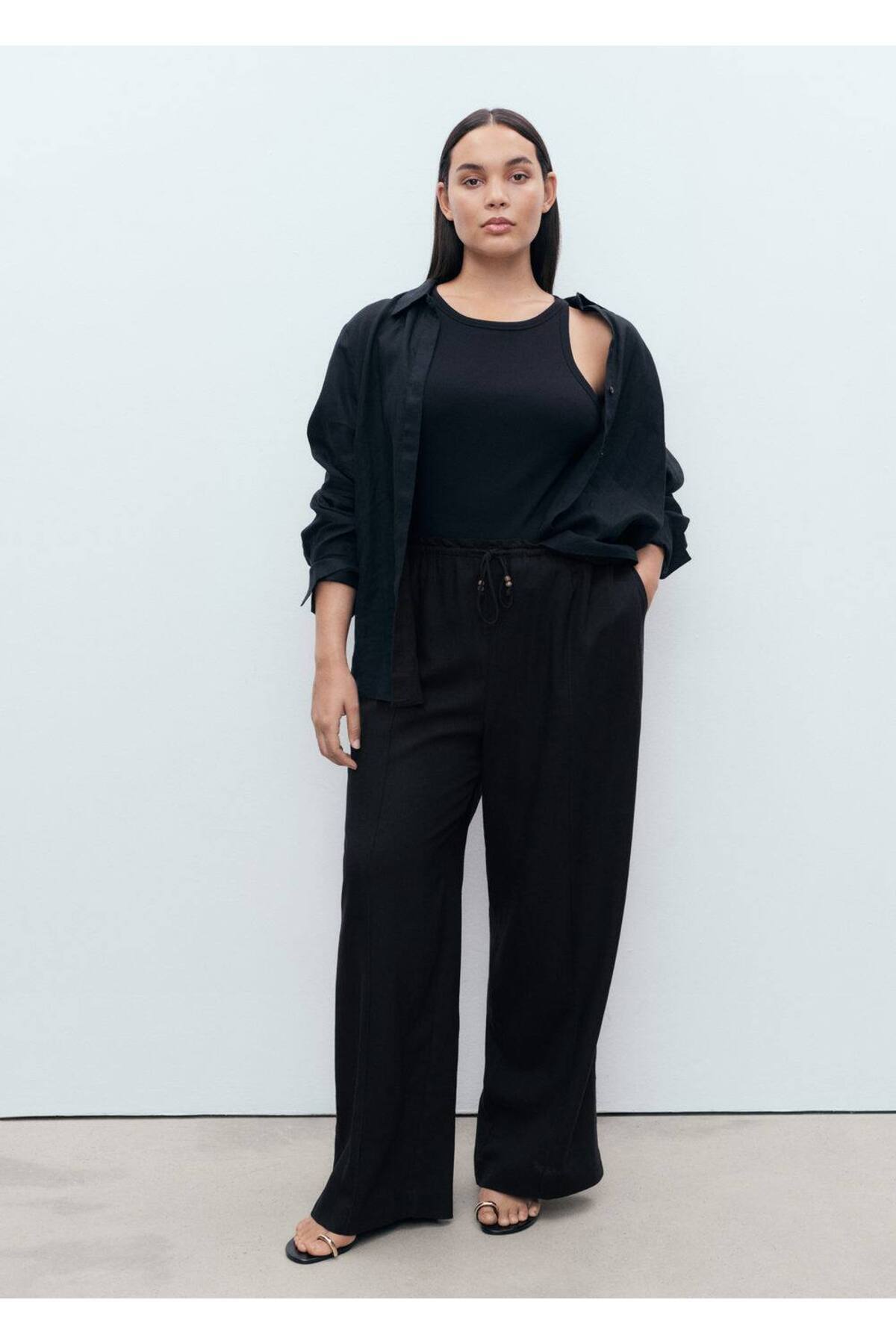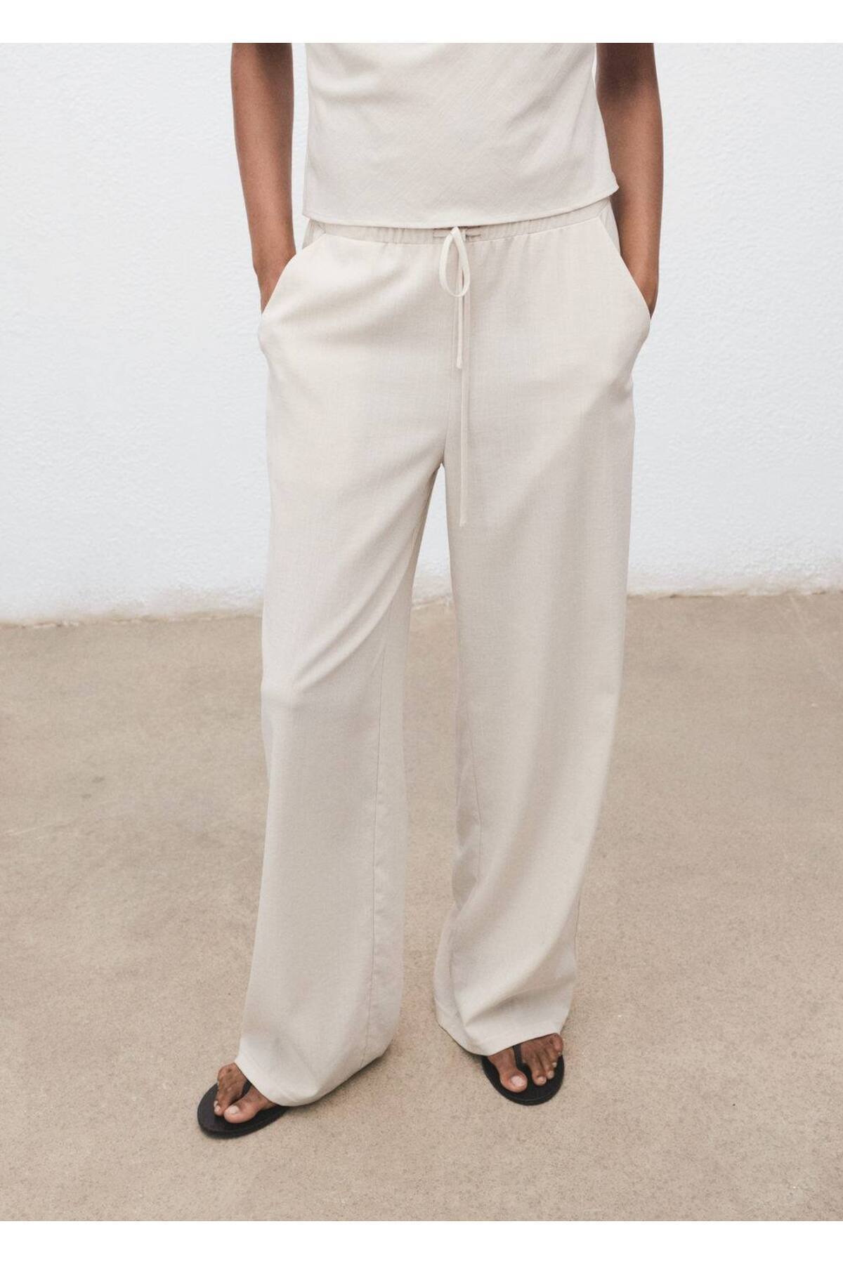 Keten karışımlı beli elastik pantolon Keten karışımlı beli elastik pantolon 17071224 XL