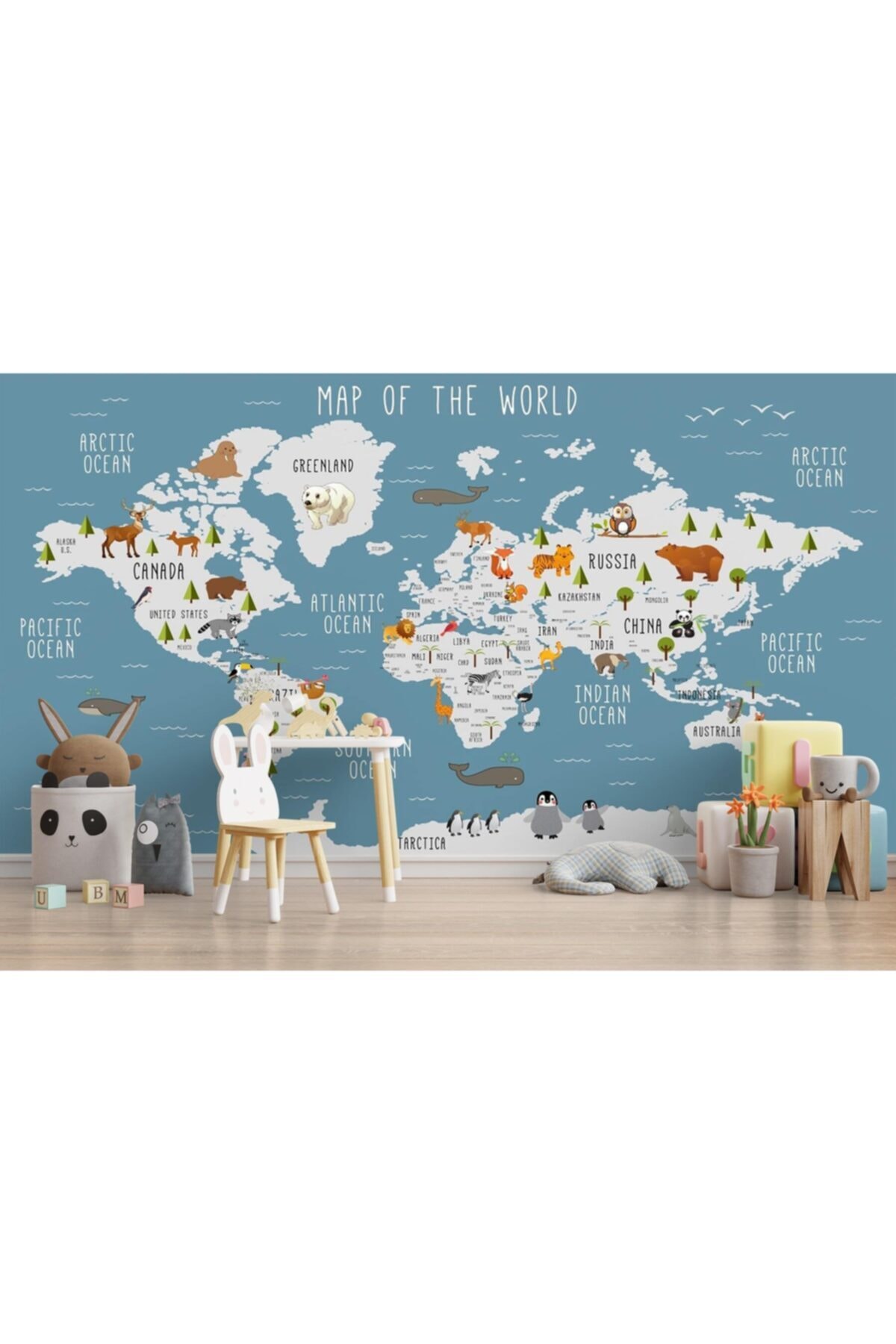 Çocuk Odası Dünya Haritası Gri Eğitici Duvar Kağıdı Çocuk Odası Dünya Haritası Gri Eğitici Duvar Kağıdı OZL-çocuk-432 250 x 170