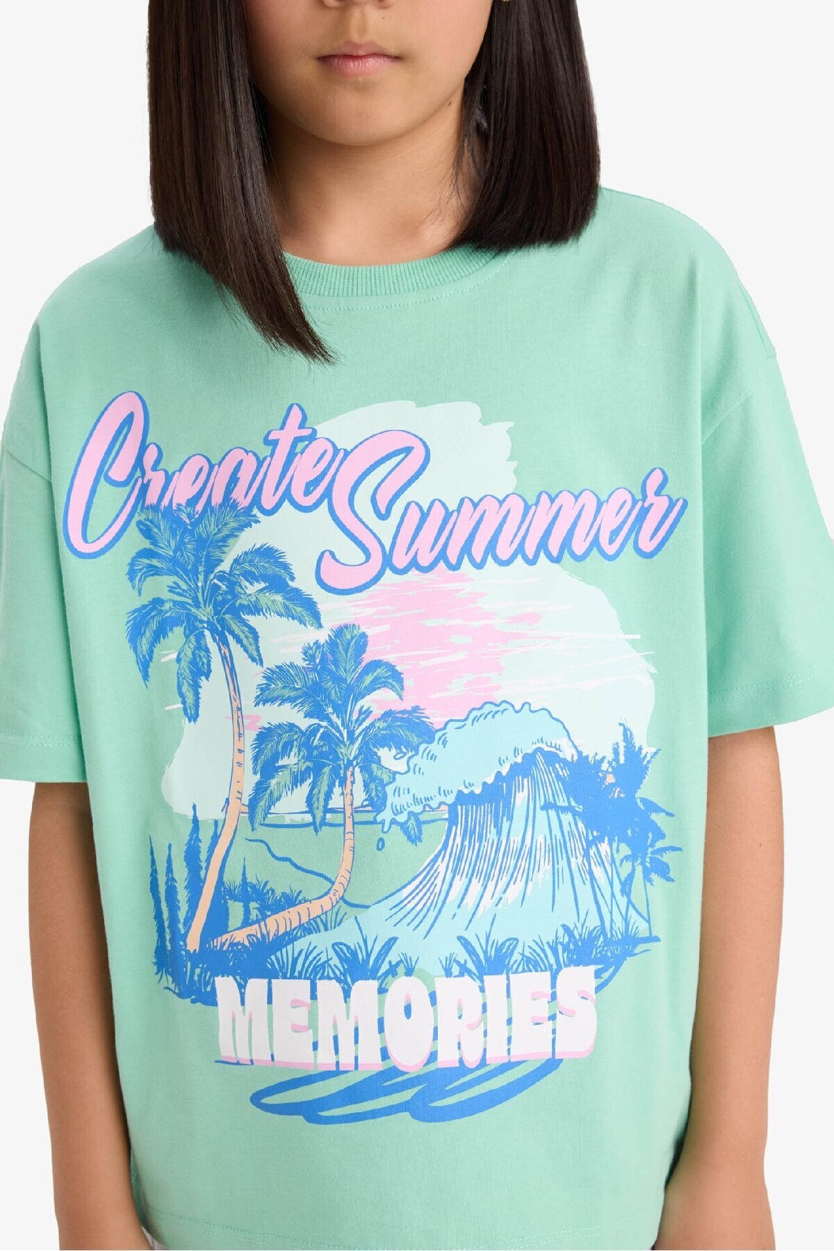 Kız Çocuk Oversize Geniş Kalıp Bisiklet Yaka Baskılı Kısa Kollu Tişört E0356A825SM Kız Çocuk Oversize Geniş Kalıp Bisiklet Yaka Baskılı Kısa Kollu Tişört E0356A825SM 13-14 Yaş