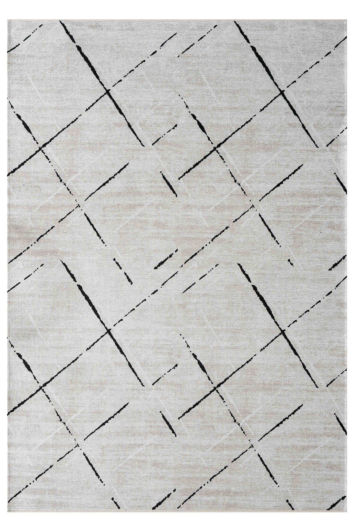 Geometrik Desenli Yıkanabilir Kaymaz Taban Şönil Halı Bej Siyah Yolluk 4171 Geometrik Desenli Yıkanabilir Kaymaz Taban Şönil Halı Bej Siyah Yolluk 4171 160 x 230