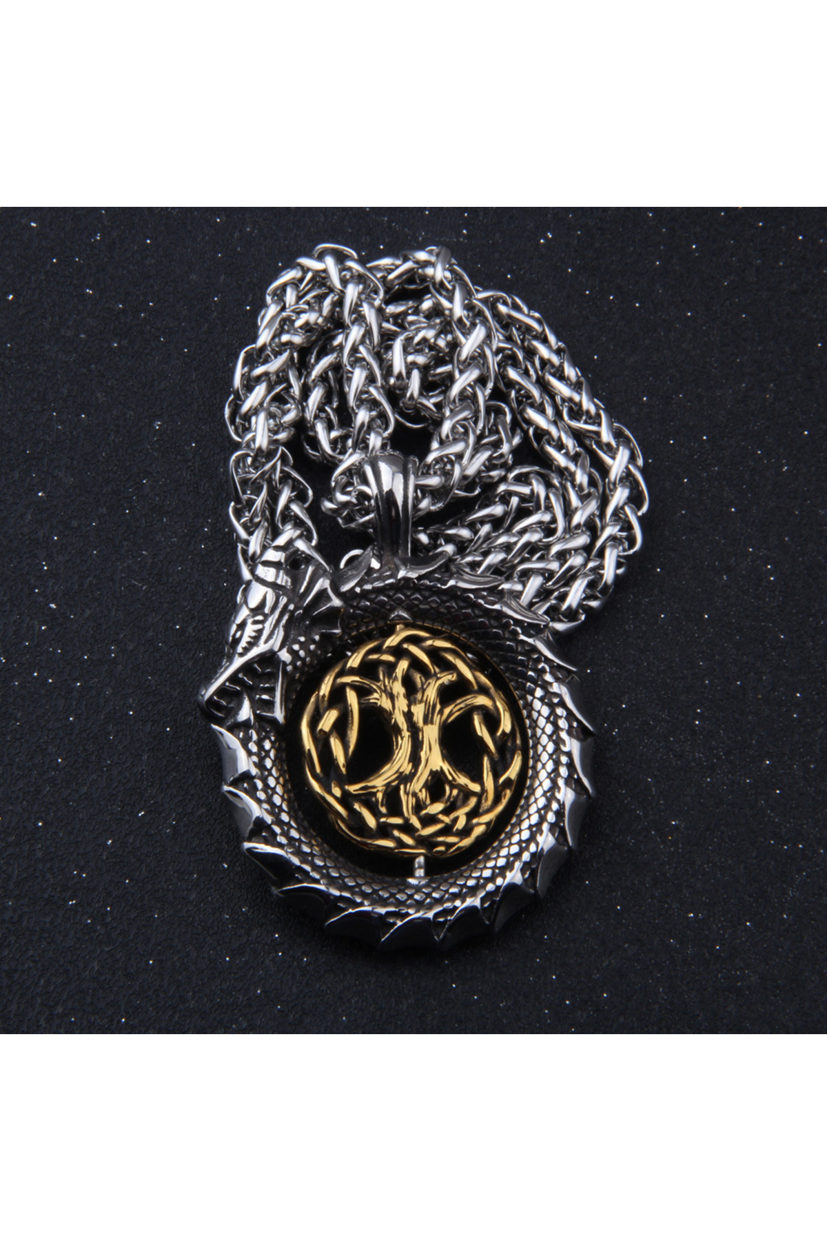 Yaşam Ağacı Ouroboros Ejderha Dönen Madalyon İskandinav Mitolojisi 316L Çelik Kolye Yaşam Ağacı Ouroboros Ejderha Dönen Madalyon İskandinav Mitolojisi 316L Çelik Kolye NSS00001742 60 cm