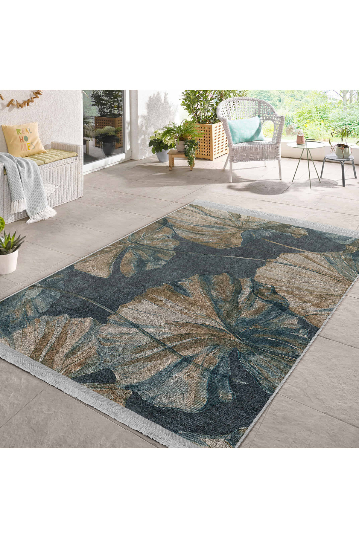 Mavi-Beyaz Yaprak Desenli Dijital Baskılı Kaymaz Taban Salon Halısı - Makinede Yıkanabilir Mavi-Beyaz Yaprak Desenli Dijital Baskılı Kaymaz Taban Salon Halısı - Makinede Yıkanabilir DikHali-11130 160 x 230